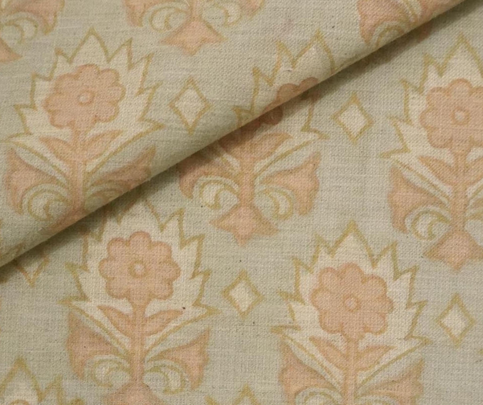 Handmade Block Printed Elegant Linen Blend Natural Sage Green Fabric for Curtains & Sofa - KUSUM