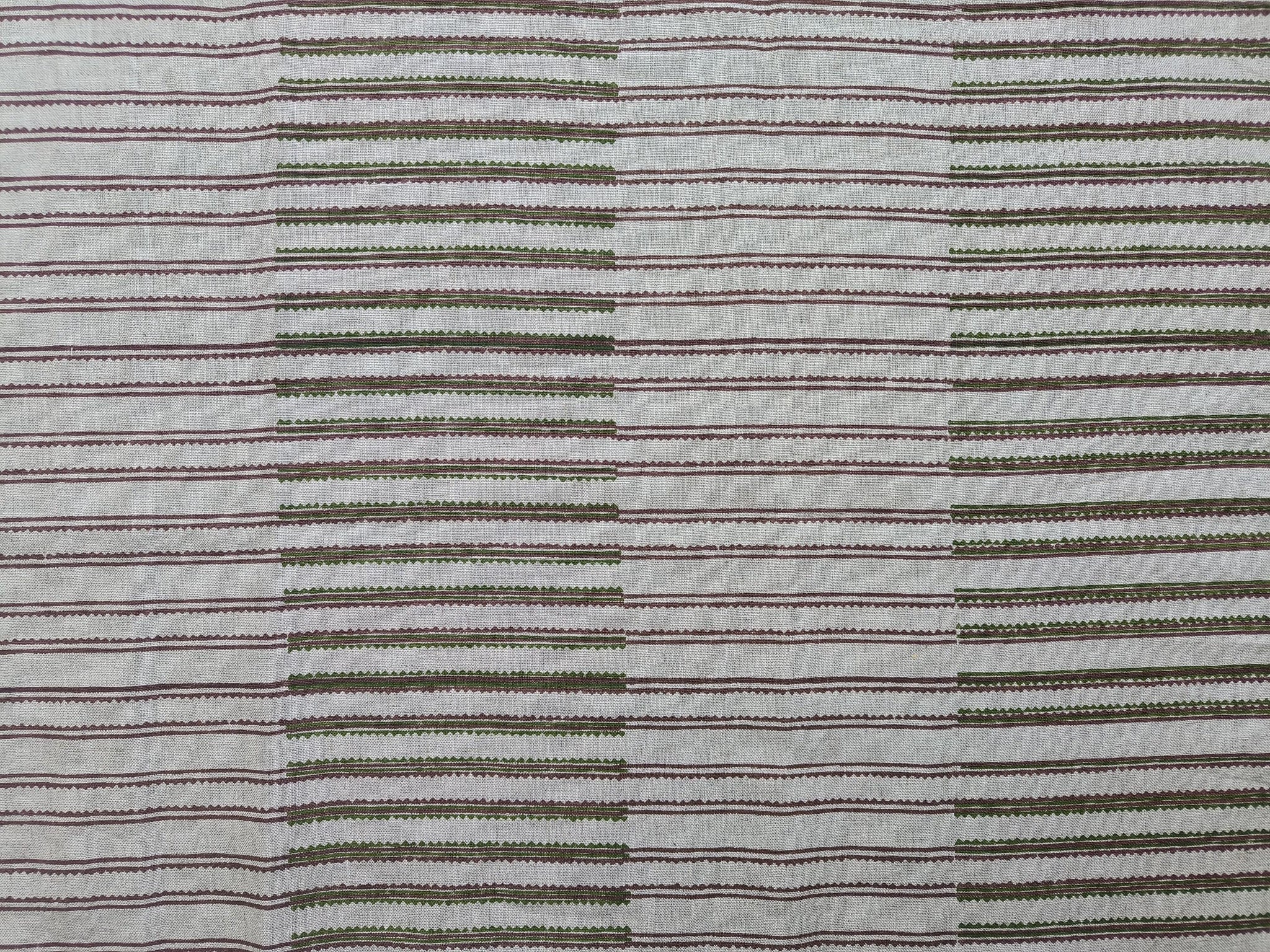 Add a touch of authentic Indian craftsmanship to your home with this handmade block printed premium pure linen fabric. Featuring a subtle gray and green stripe design, it is perfect for creating curtains, pillows, table cloths, and other home decor items. Crafted by skilled artisans, this fabric combines durability, elegance, and traditional charm, making it ideal for both everyday use and special occasions.