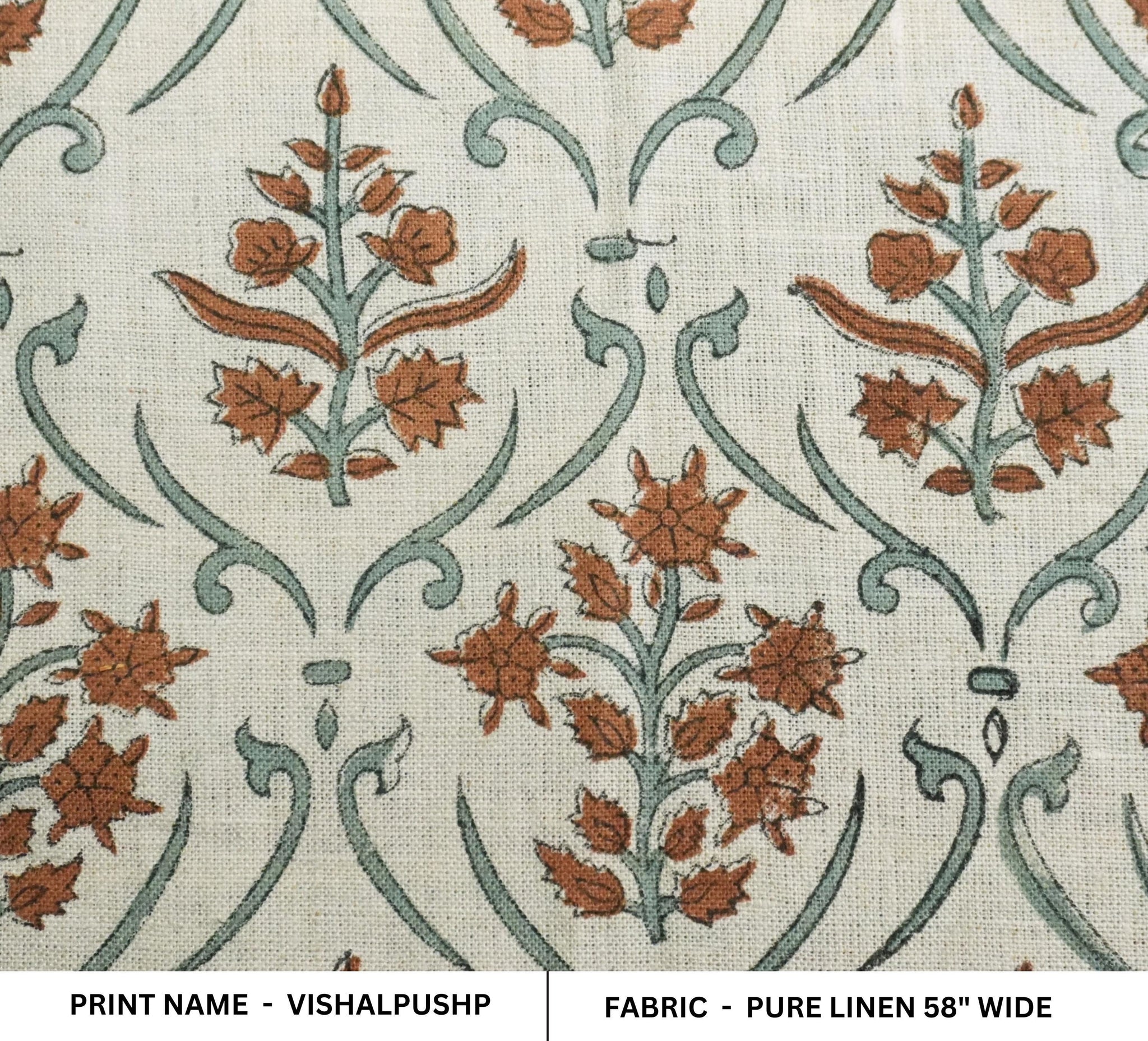 Indian Handcrafted Block Printed Blue and Brown Floral Pure Linen Fabric for Curtains – VISHALPUSHP