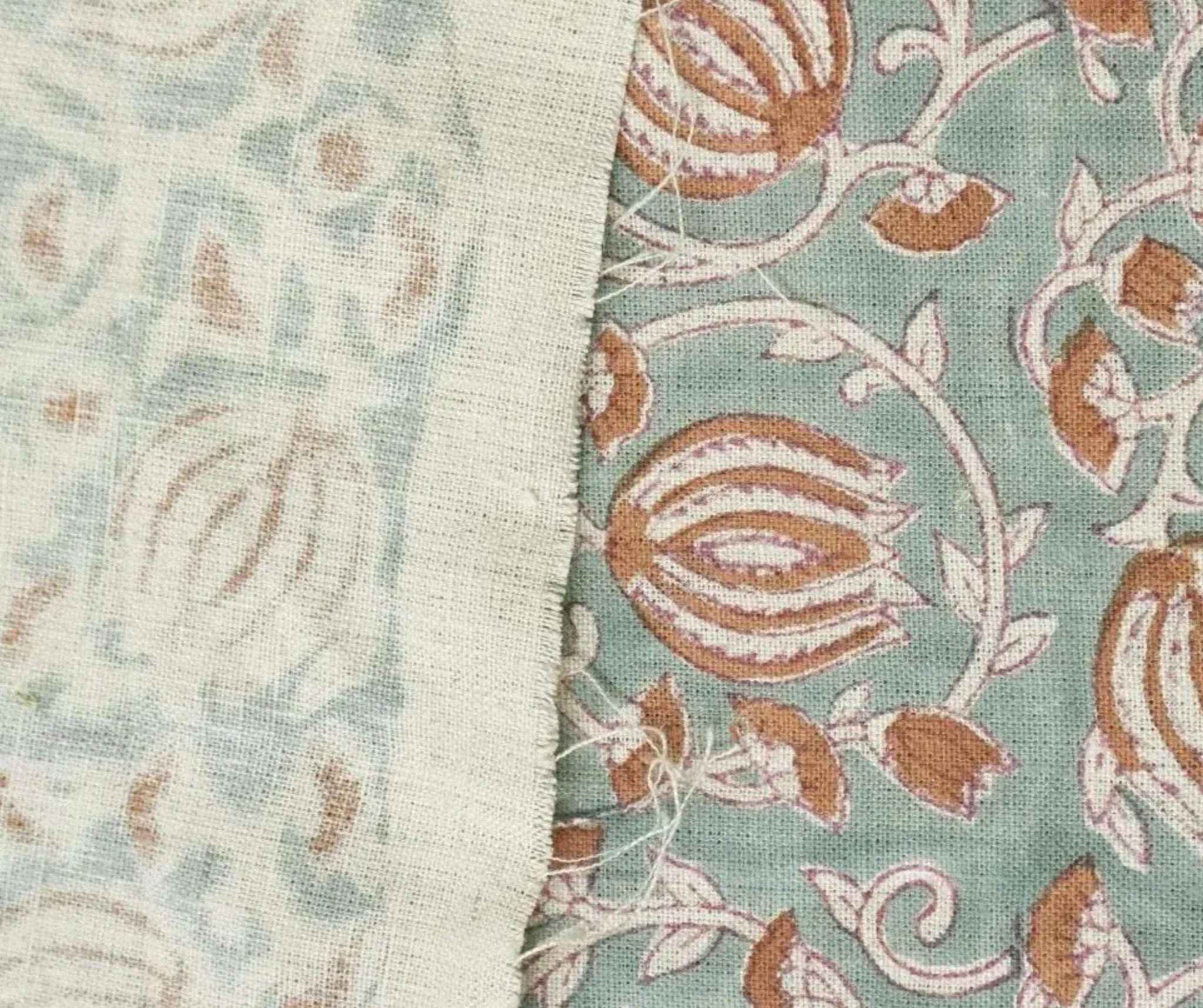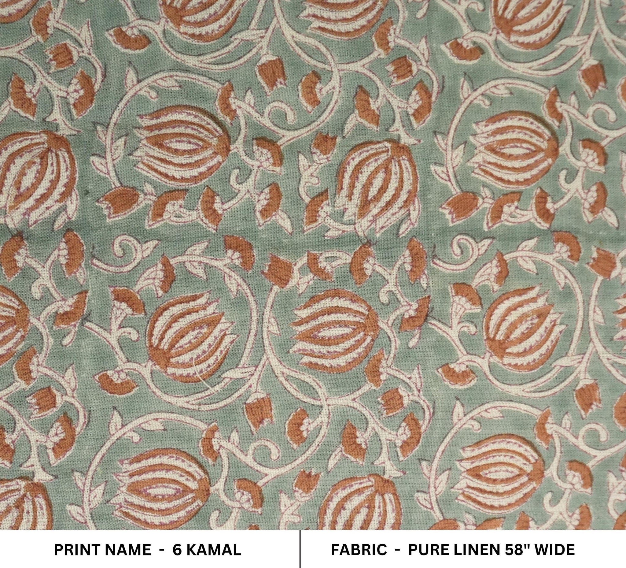 Bring the charm of traditional Indian artistry into your home with the 6 KAMAL Pure Linen Fabric, beautifully adorned with brown and blueish floral block prints. Crafted by skilled artisans using age-old hand block printing techniques, this fabric captures the essence of timeless craftsmanship and natural elegance.