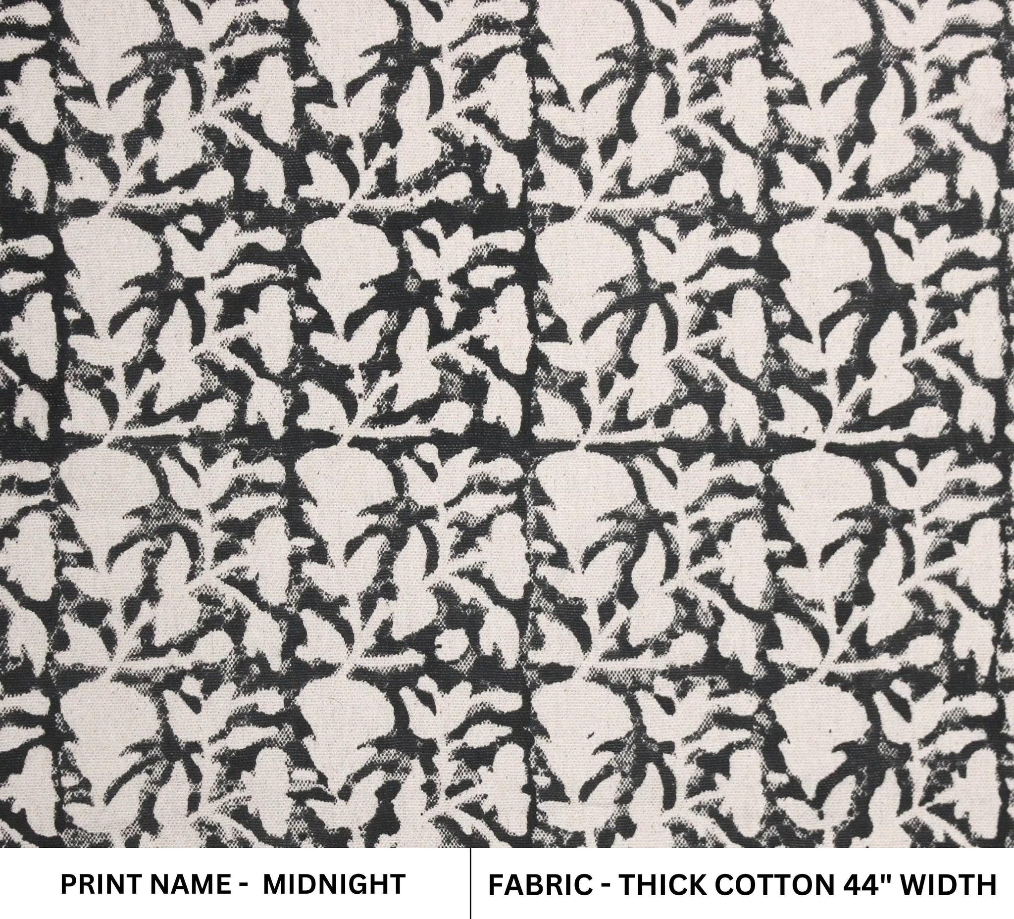 Block Printed Duck Canvas Black and Beige Floral Fabric for Cushion Covers & Sofa Decor – MIDNIGHT GUDHAL