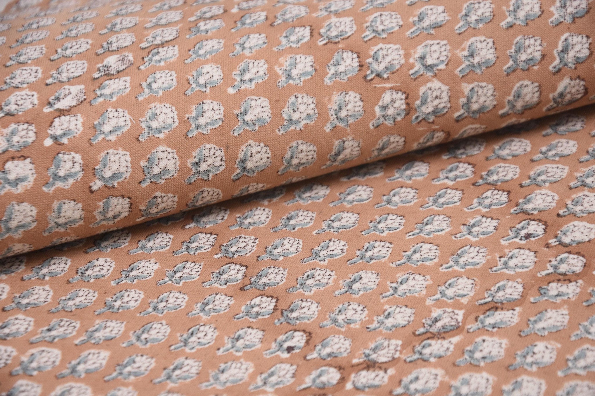 Each fabric piece is hand block printed, so slight variations in color, motif, or texture are natural, enhancing its authentic handcrafted appeal.