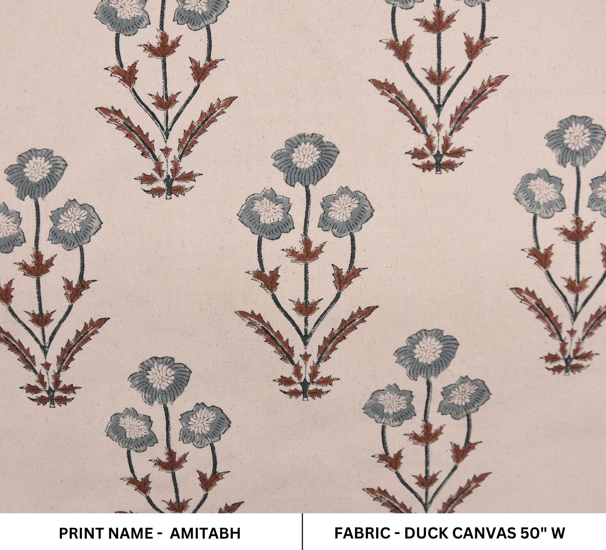 Add artisanal charm to your home with the Amitabh Handcrafted Block Printed Duck Canvas Fabric. Featuring a brown and gray floral design on a beige base, this 50" wide duck canvas is perfect for lampshades, windowpanes, cushions, and decorative accents. Durable, medium-weight, and handmade using traditional Indian block printing techniques, each piece has subtle variations, making every fabric unique. Its sturdy yet breathable texture ensures both functionality and elegance, enhancing your living space with timeless craftsmanship.