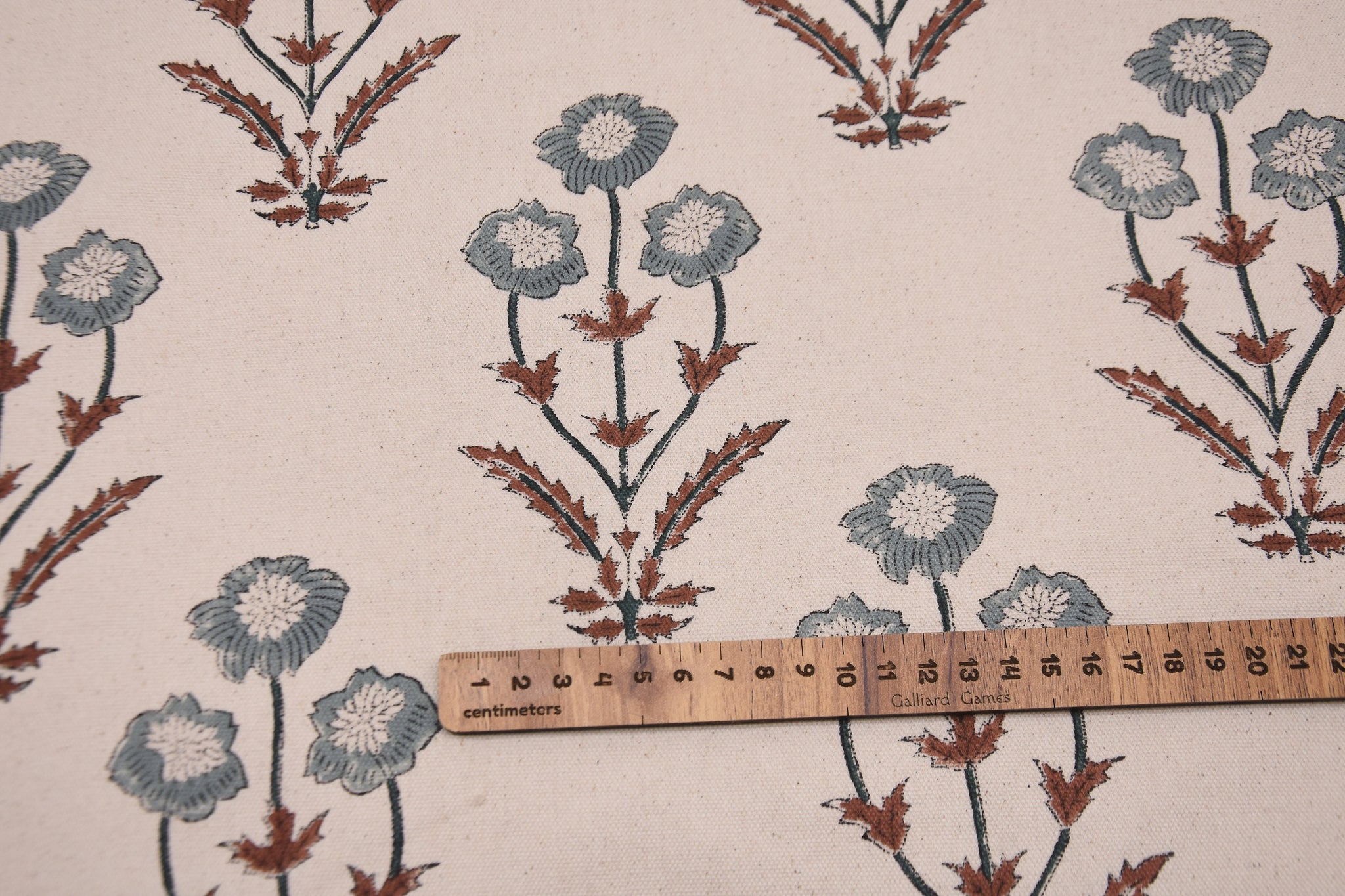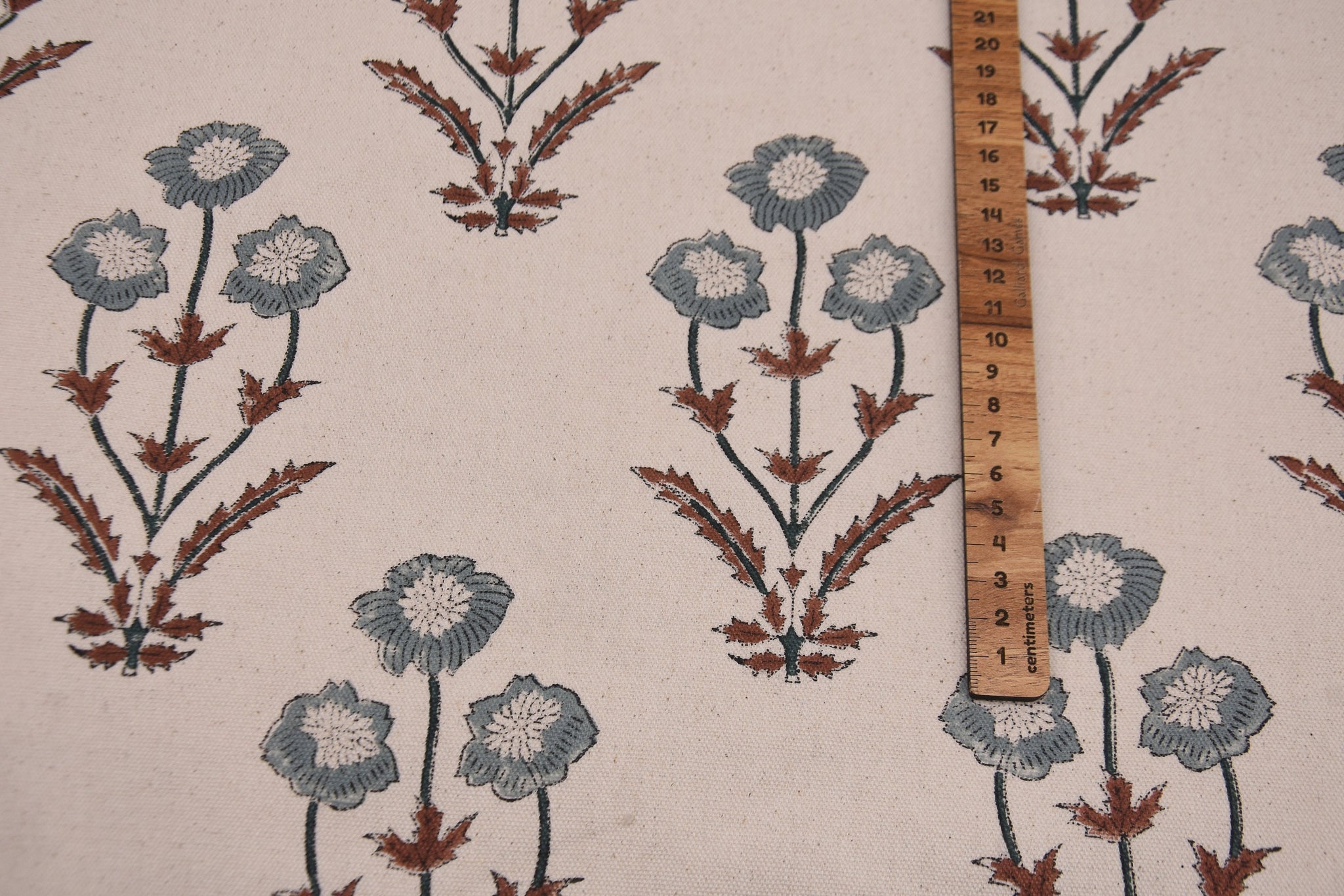 Handcrafted Block Print Duck Canvas 50" Wide Brown & Gray Floral Beige Base Fabric for Lampshades – Amitabh