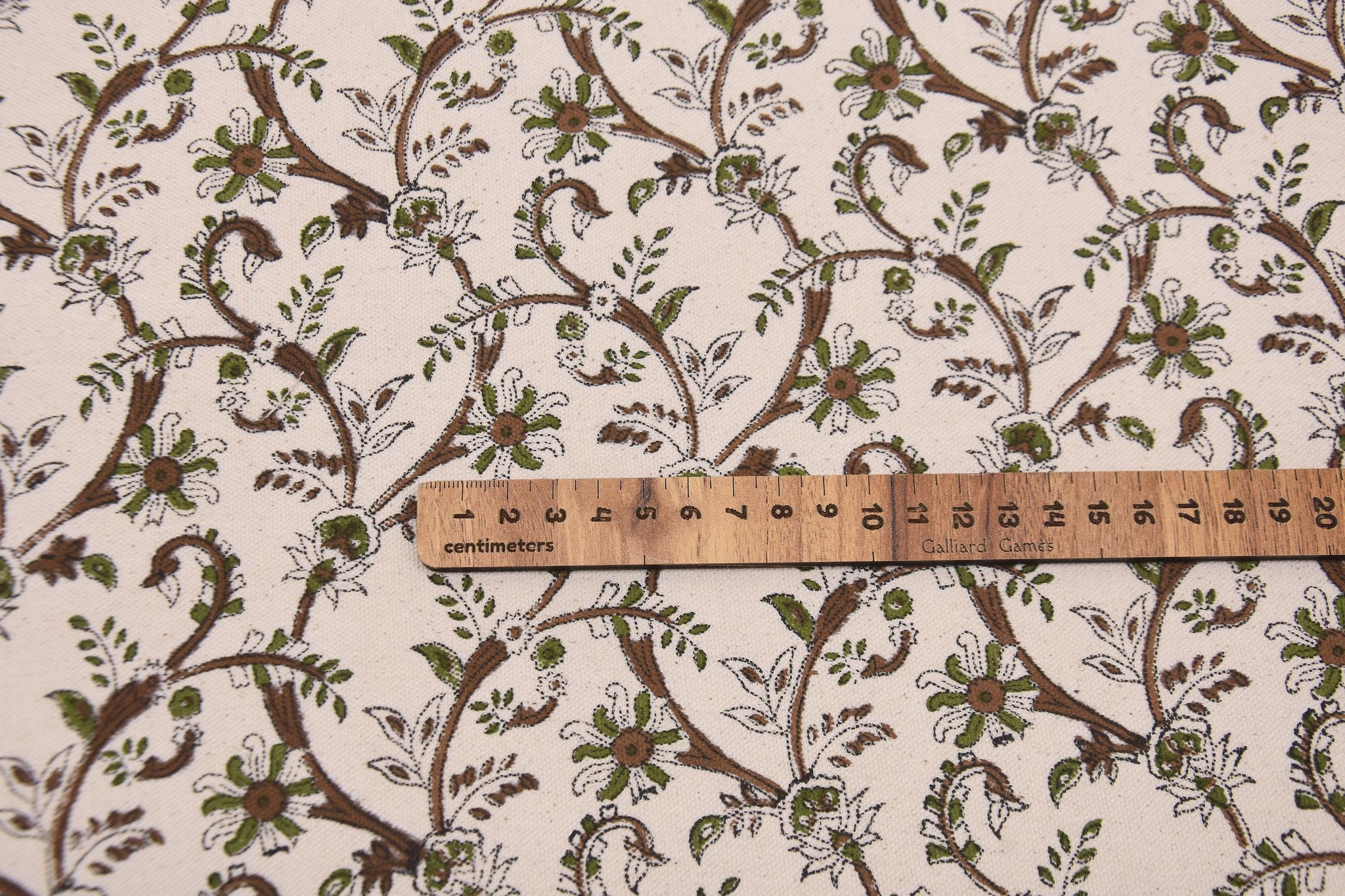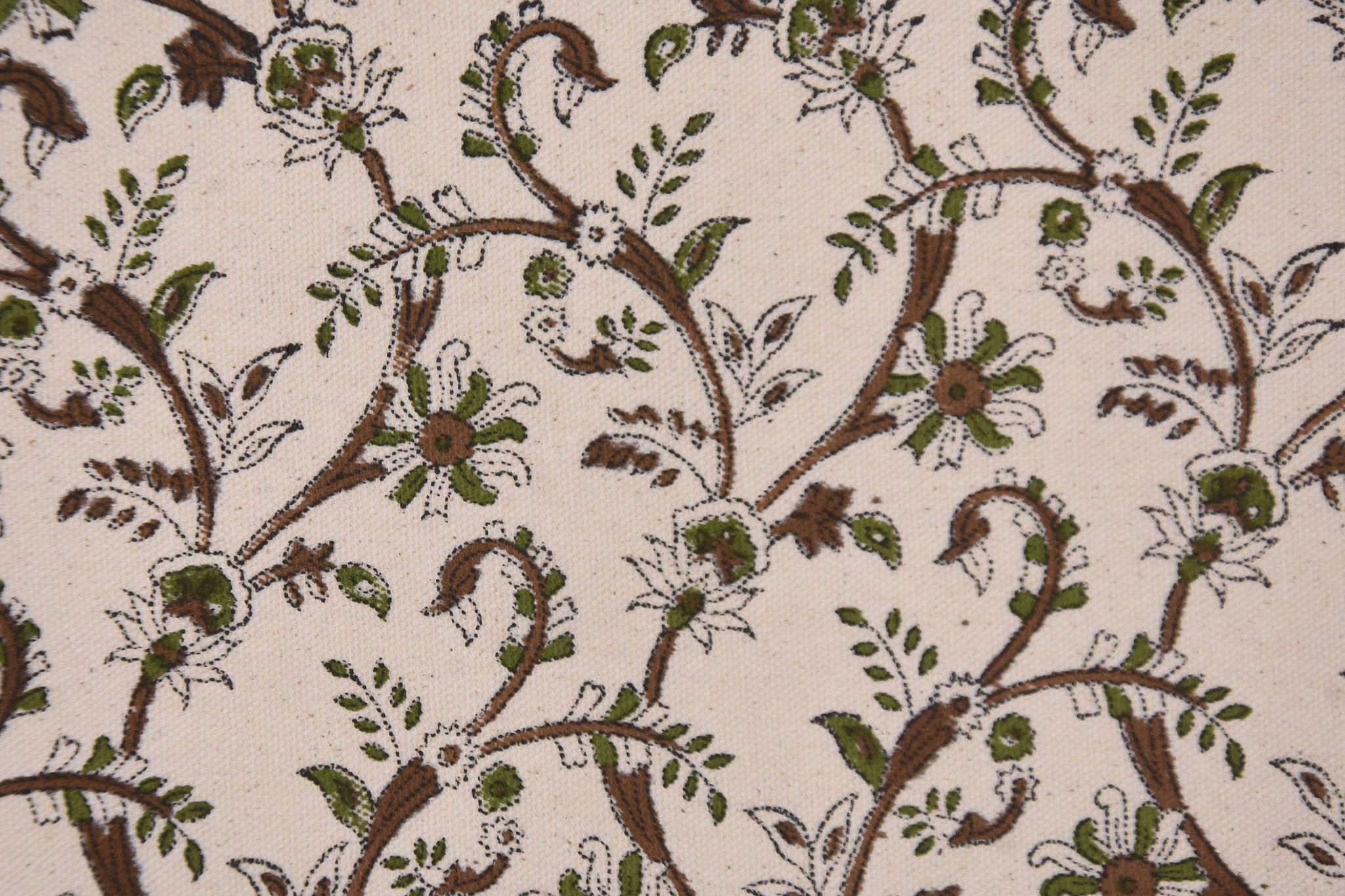Handcrafted Printed Duck Canvas 50" Wide Fabric in Brown and Green Floral Design for Window Shades – Varanasi