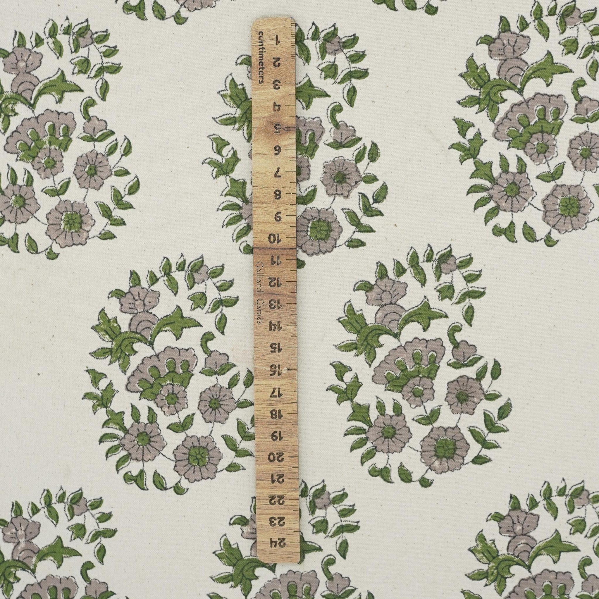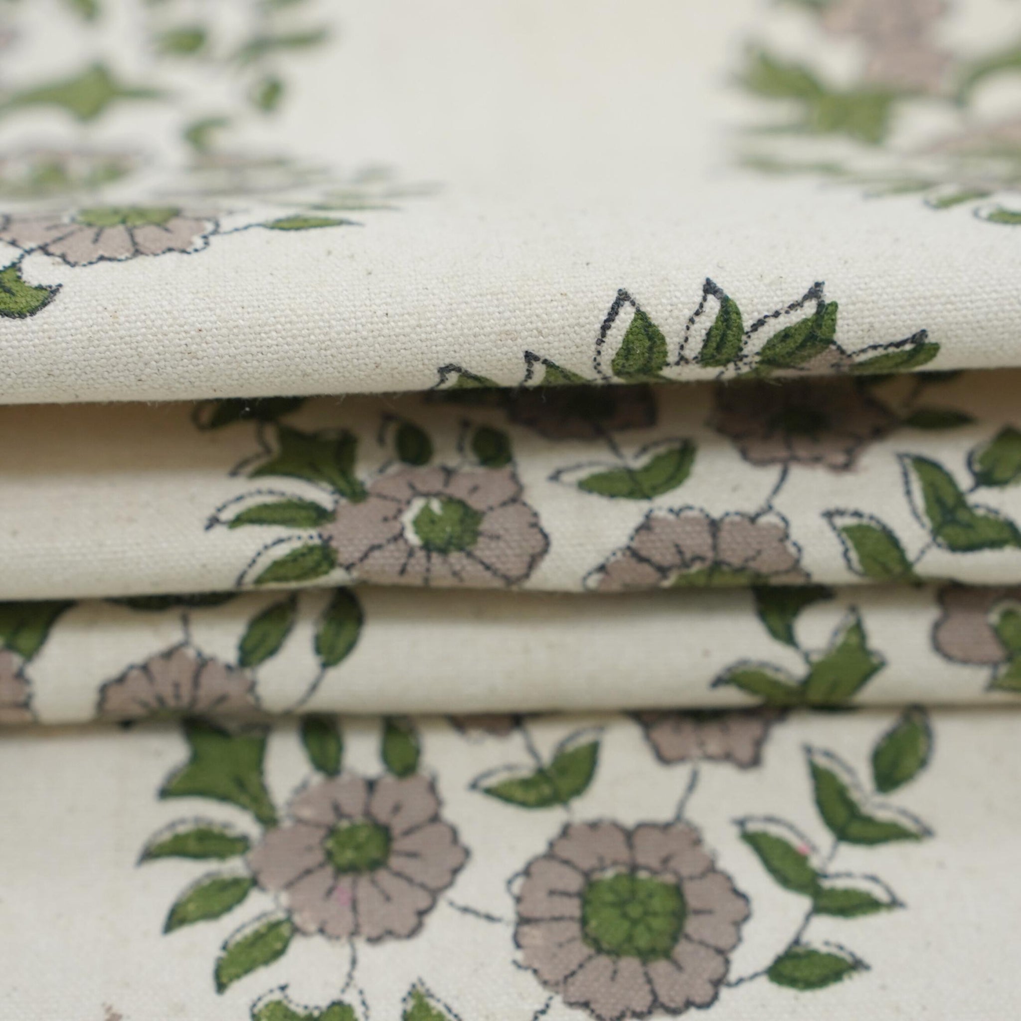 Hand-Stamped Block Printed Beige and Green Floral Duck Canvas Fabric for Curtains & Window Treatments – ANARKALI