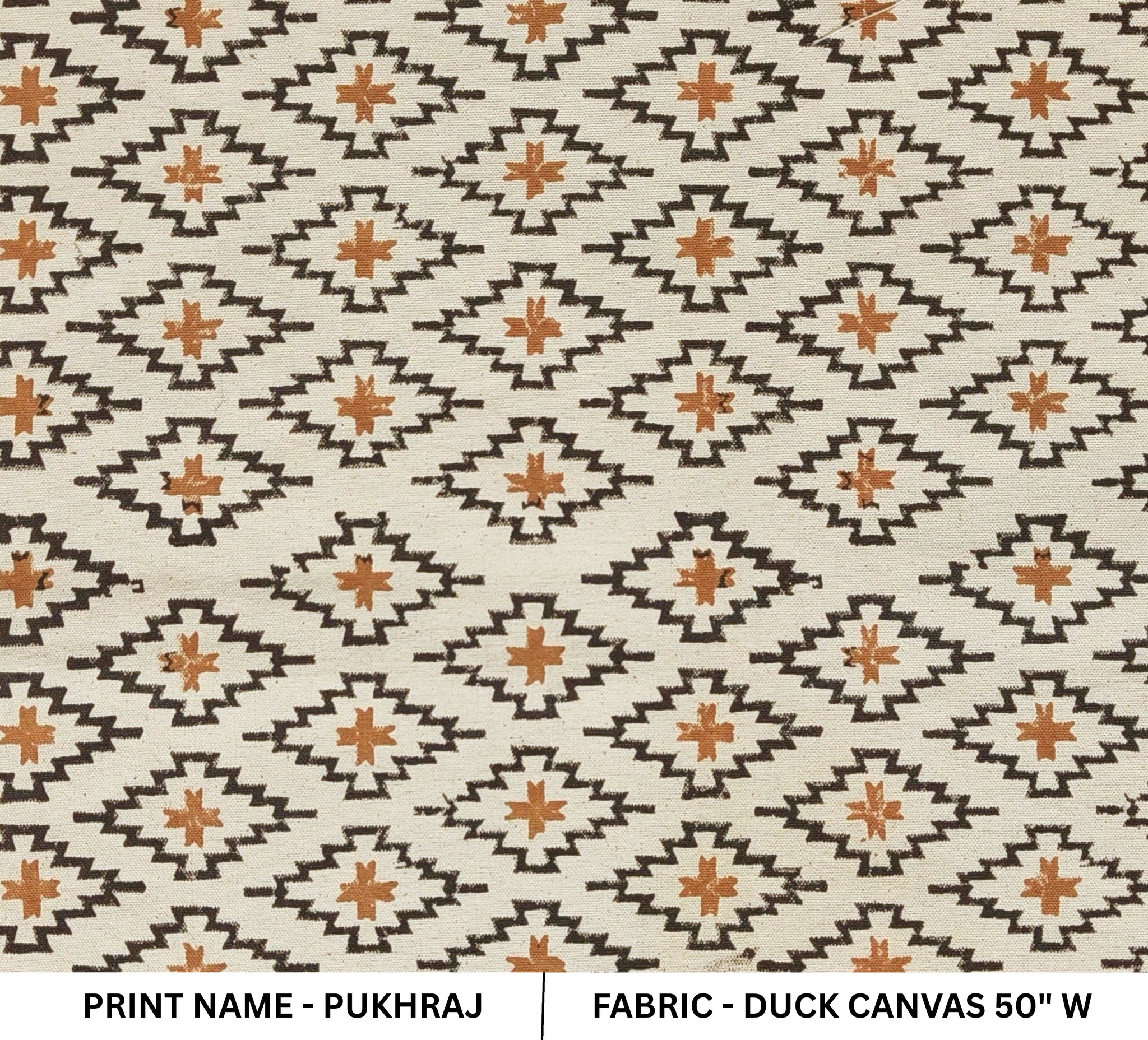 Made from premium duck canvas, it is thick, durable, and long-lasting, offering a natural texture that adds warmth and style to any living space. Each yard is hand block printed by skilled Indian artisans, ensuring unique variations in pattern and color, reflecting authentic handmade artistry.
