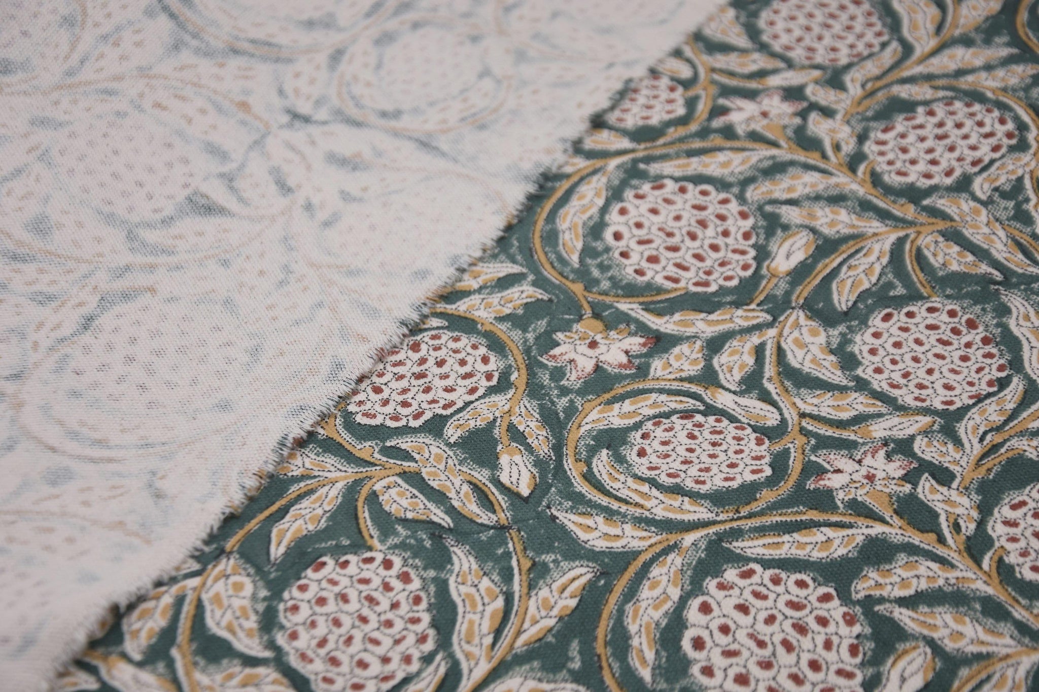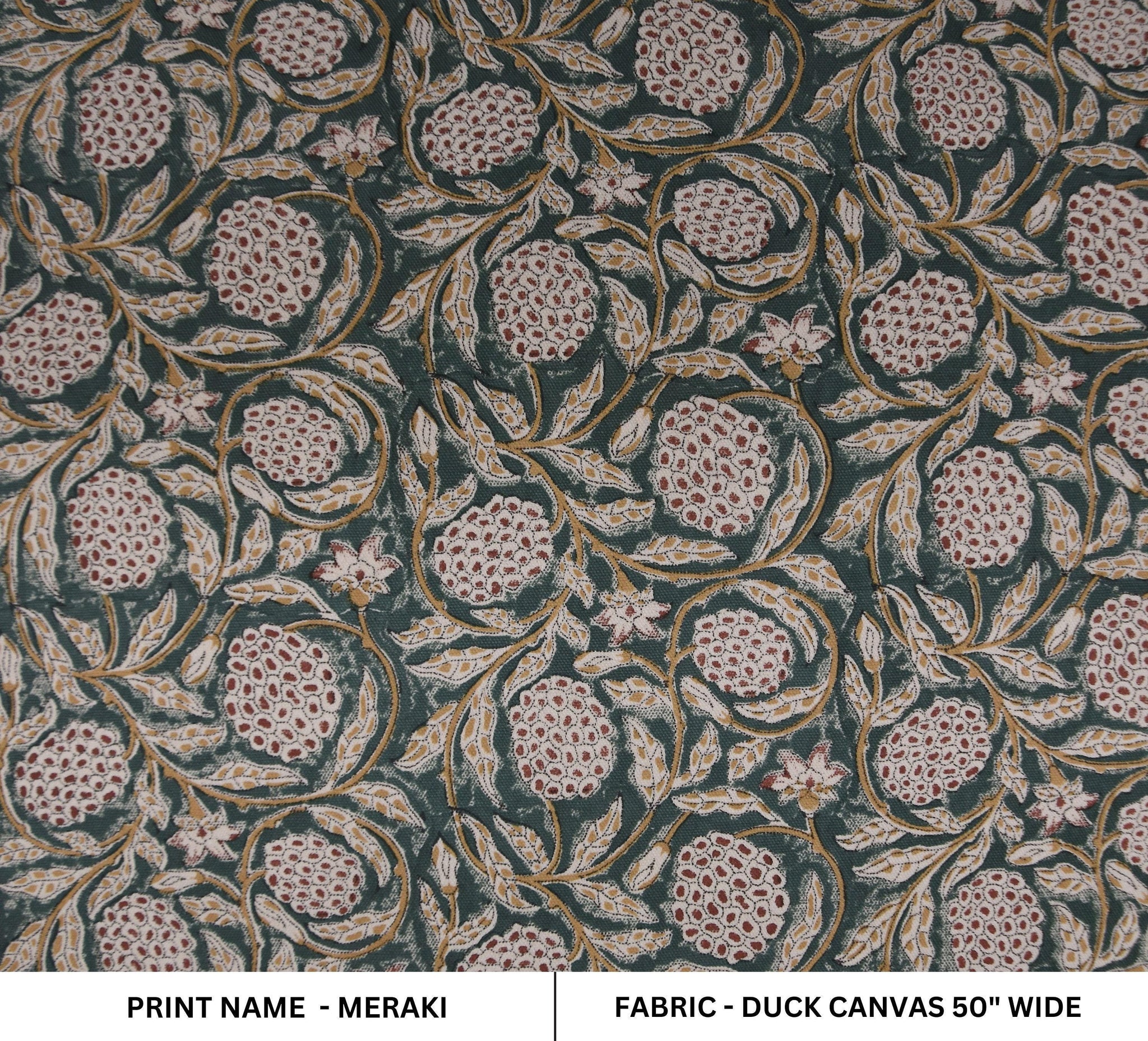 Indian Block Printed Maroon and Green Floral Cushion Cover on Duck Canvas Fabric for window shades and table cloth - MERAKI