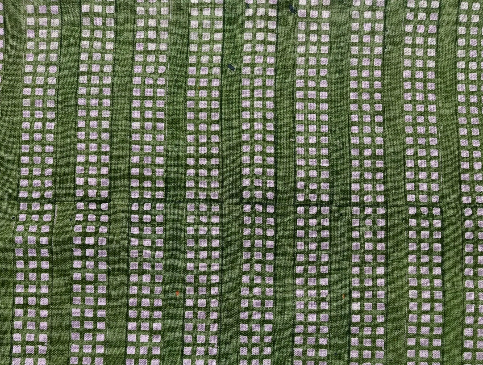 Handcrafted Block Printed Green Grass Pure Line Fabric For Sofa Cushion Cover - RUBIK'S CUBE