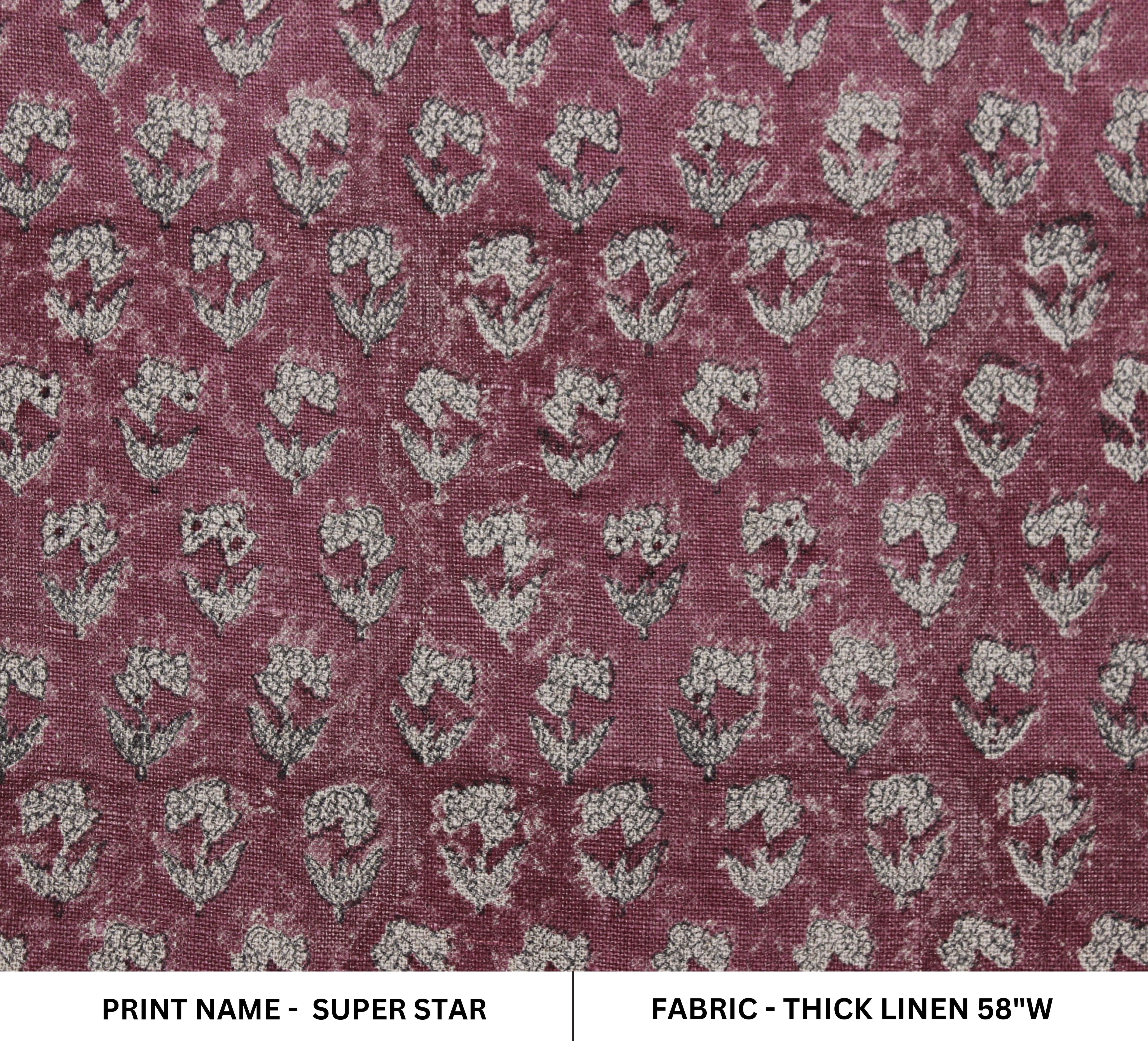 Handmade Maroon Floral Block Printed Thick Linen Fabric For Bedroom Decor - SUPER STAR