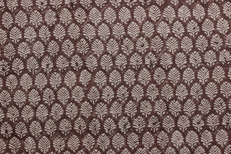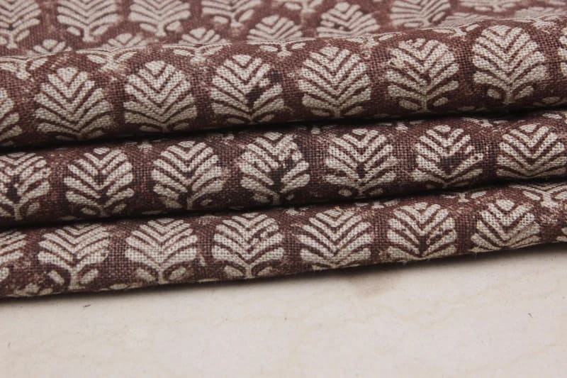Block Print Indian Linen Fabric Brown Leaves - Sangmarmar