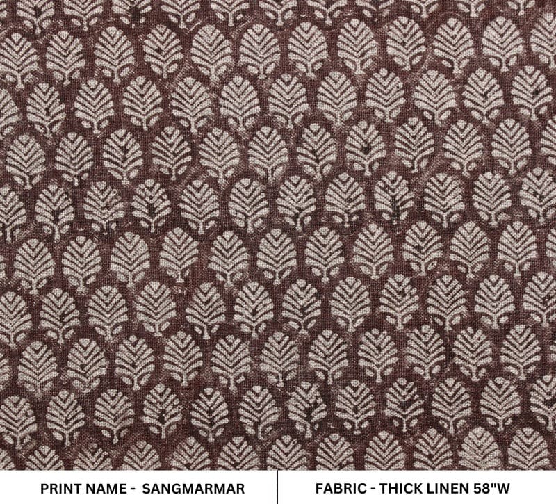 Immerse your home in elegance with Fabritual SANGMARMAR Thick Linen Hand Block Print Fabric. This luxurious heavy-weight linen features intricately hand-stamped floral patterns that effortlessly elevate chairs, sofas, curtains, cushions, and other décor projects. Combining heritage Indian craftsmanship with modern design, it adds sophistication and long-lasting durability to any interior.