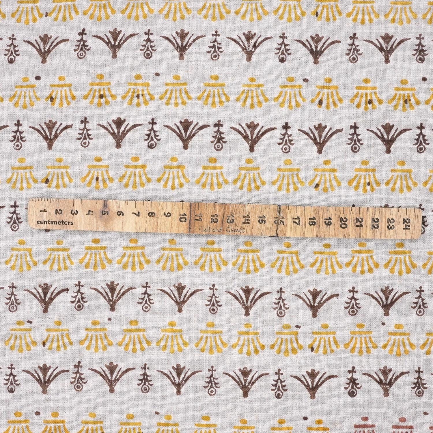 Indian Hand Block Mustard and Brown Floral Fabric on Pure Linen for Tabel Cover - Hastatkala
