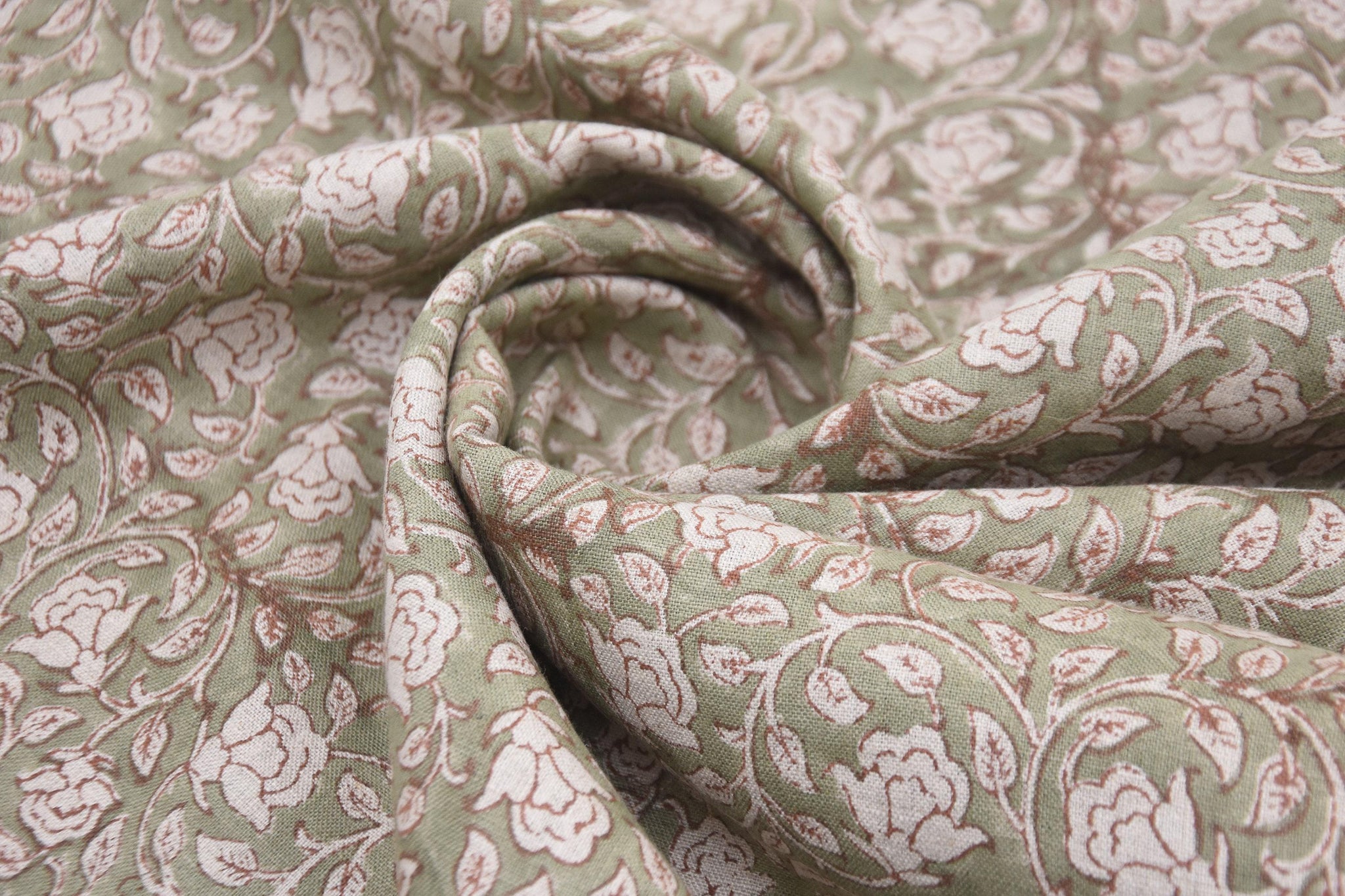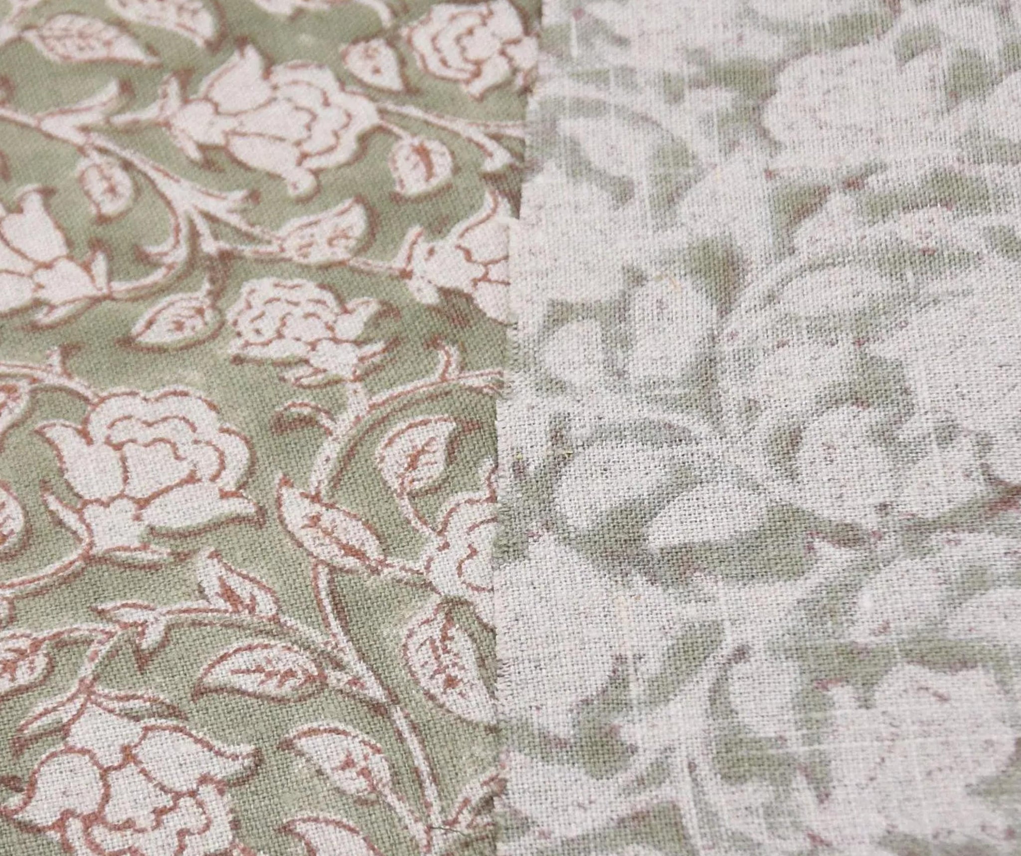 Handcrafted Throw Silver Pink Floral Block Printed Pure Linen 58" Wide Fabric for Window Curtains – AMRITVELA