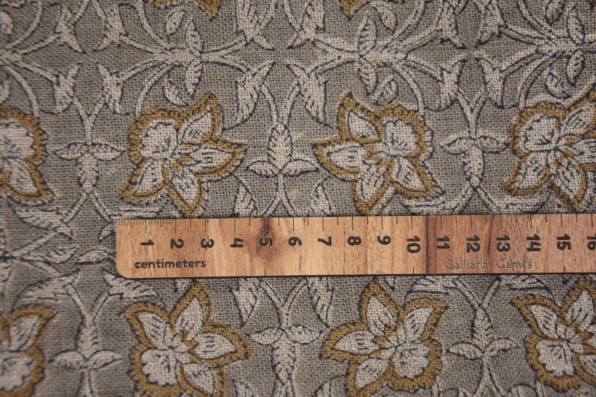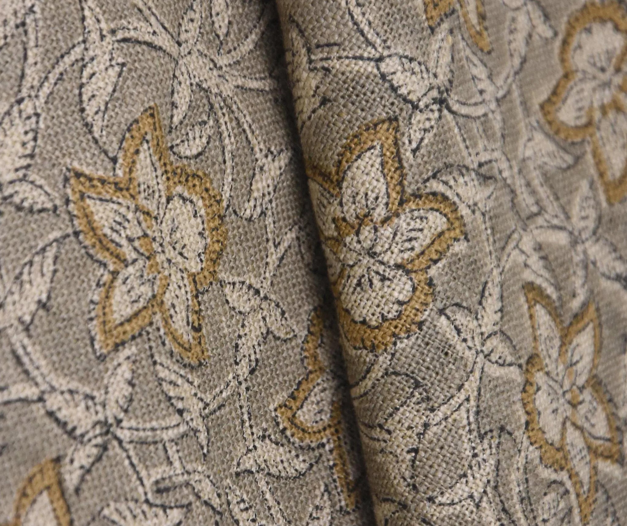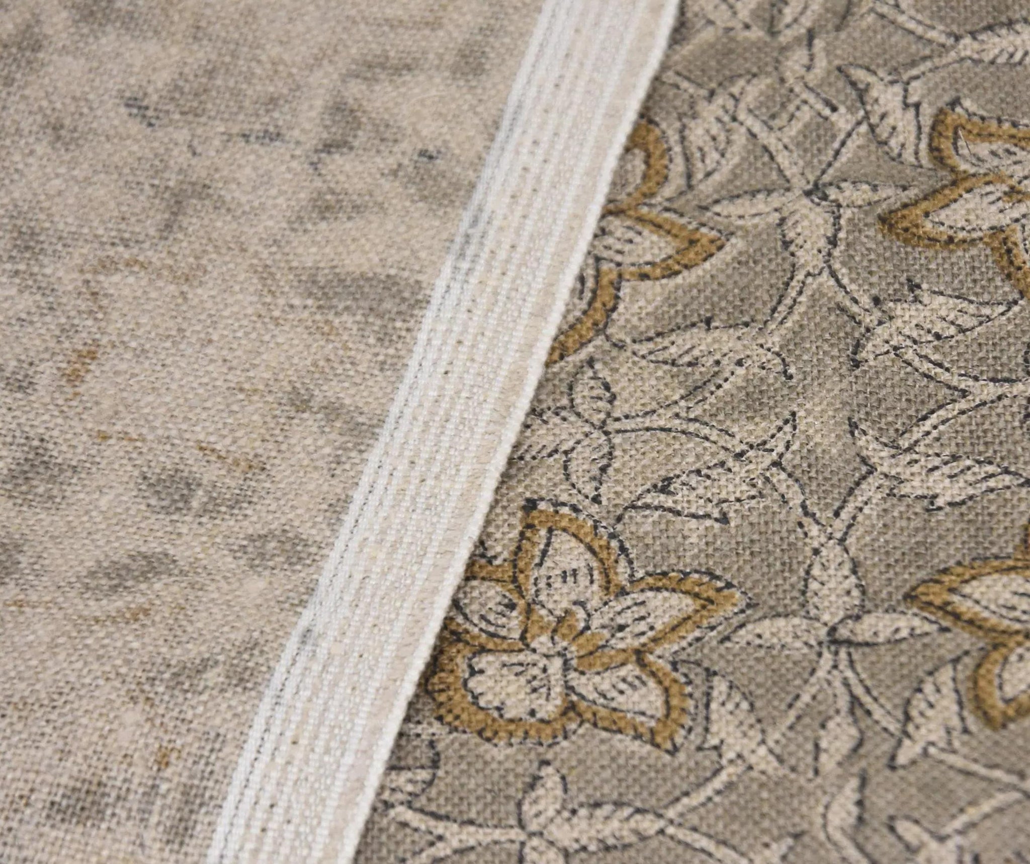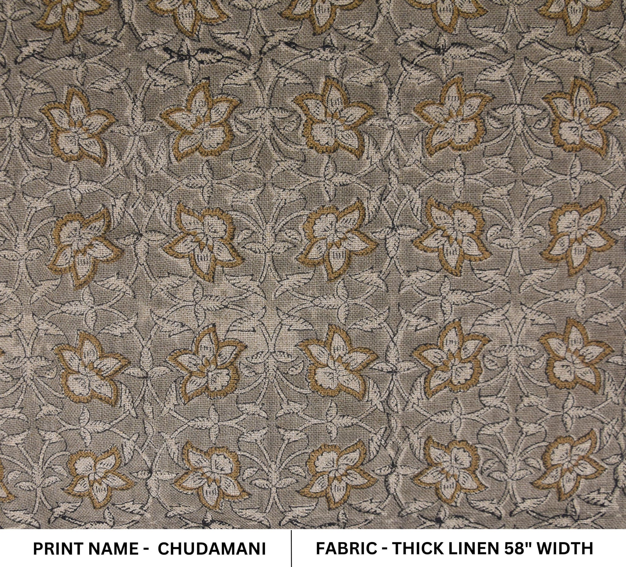 Enhance your home décor with the Chudamani Brown and Silver Pink Floral Hand Block Printed Linen Fabric. Crafted from premium thick linen, this fabric features an elegant brown and silver pink floral design, carefully created using traditional hand block printing techniques. Perfect for cushion covers, upholstery, curtains, and other DIY décor projects, this breathable and durable fabric blends artisanal beauty with everyday functionality. Each piece is handcrafted, ensuring unique variations in print and texture.