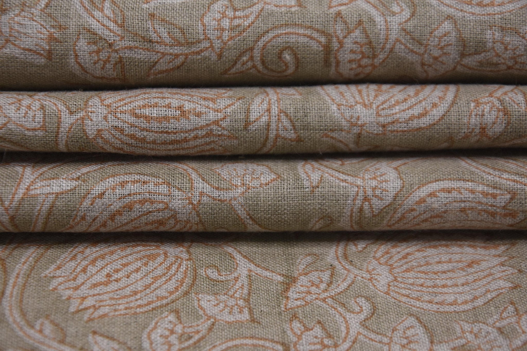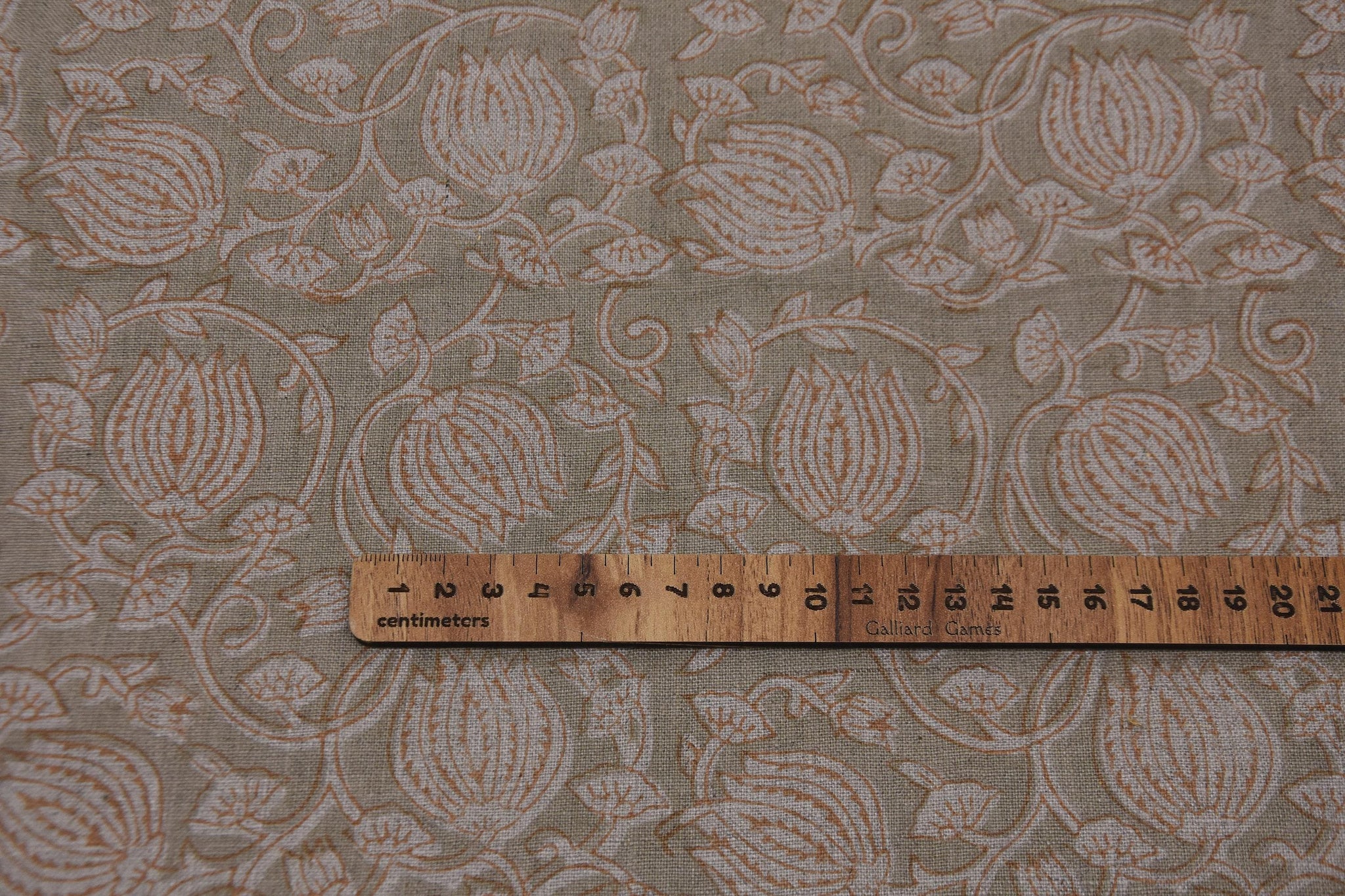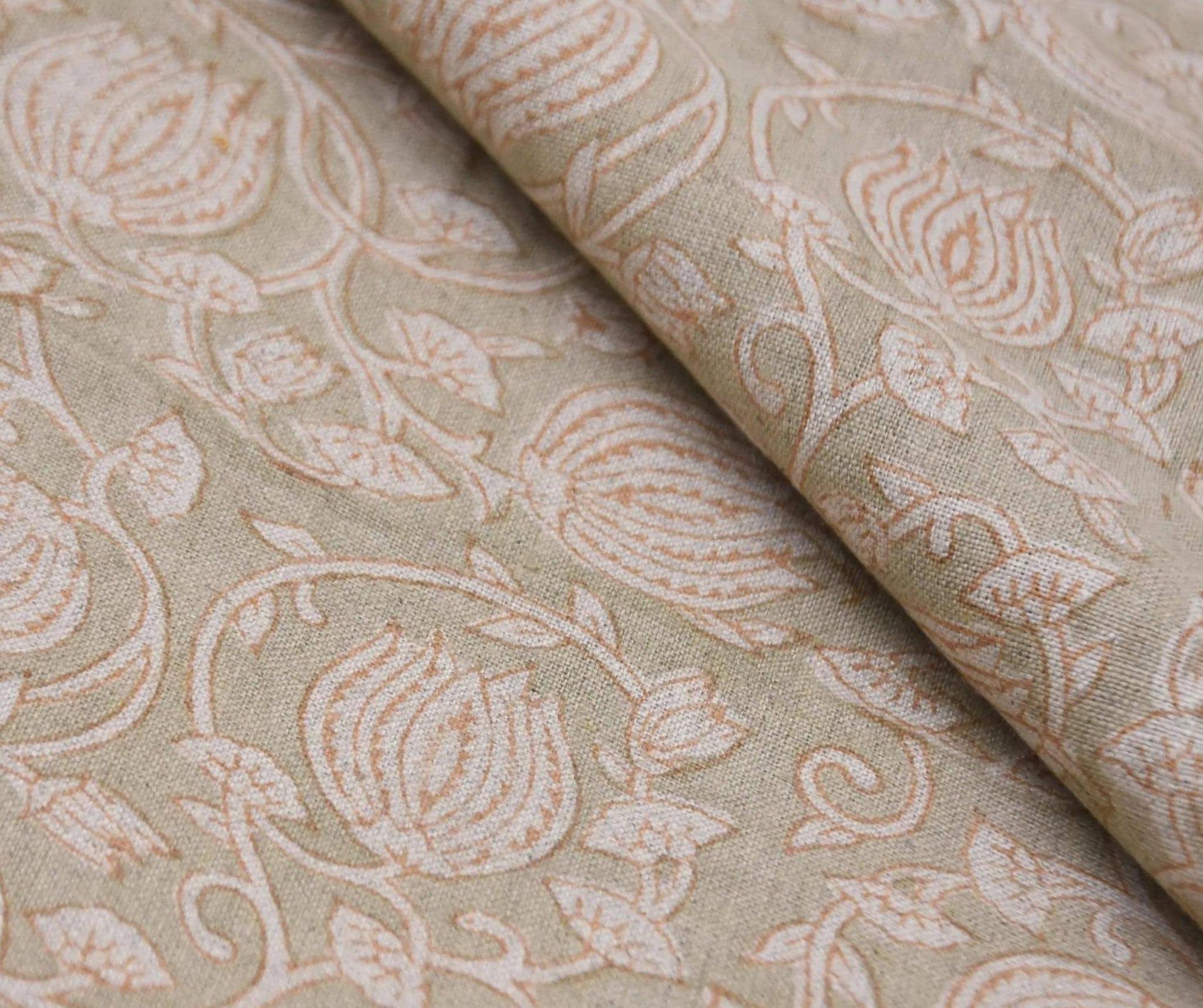 Hand Block Printed Thick Linen Fabric Brown and Beige Floral for Cushions & Window Curtains – 6 KAMAL
