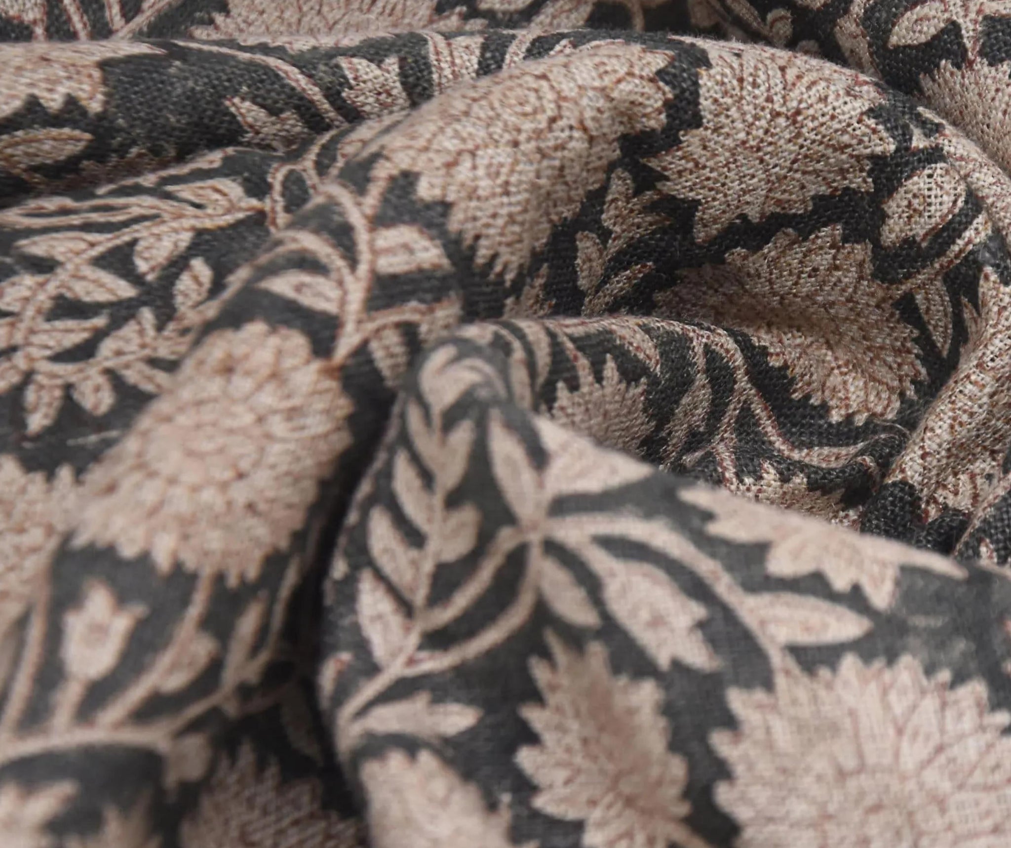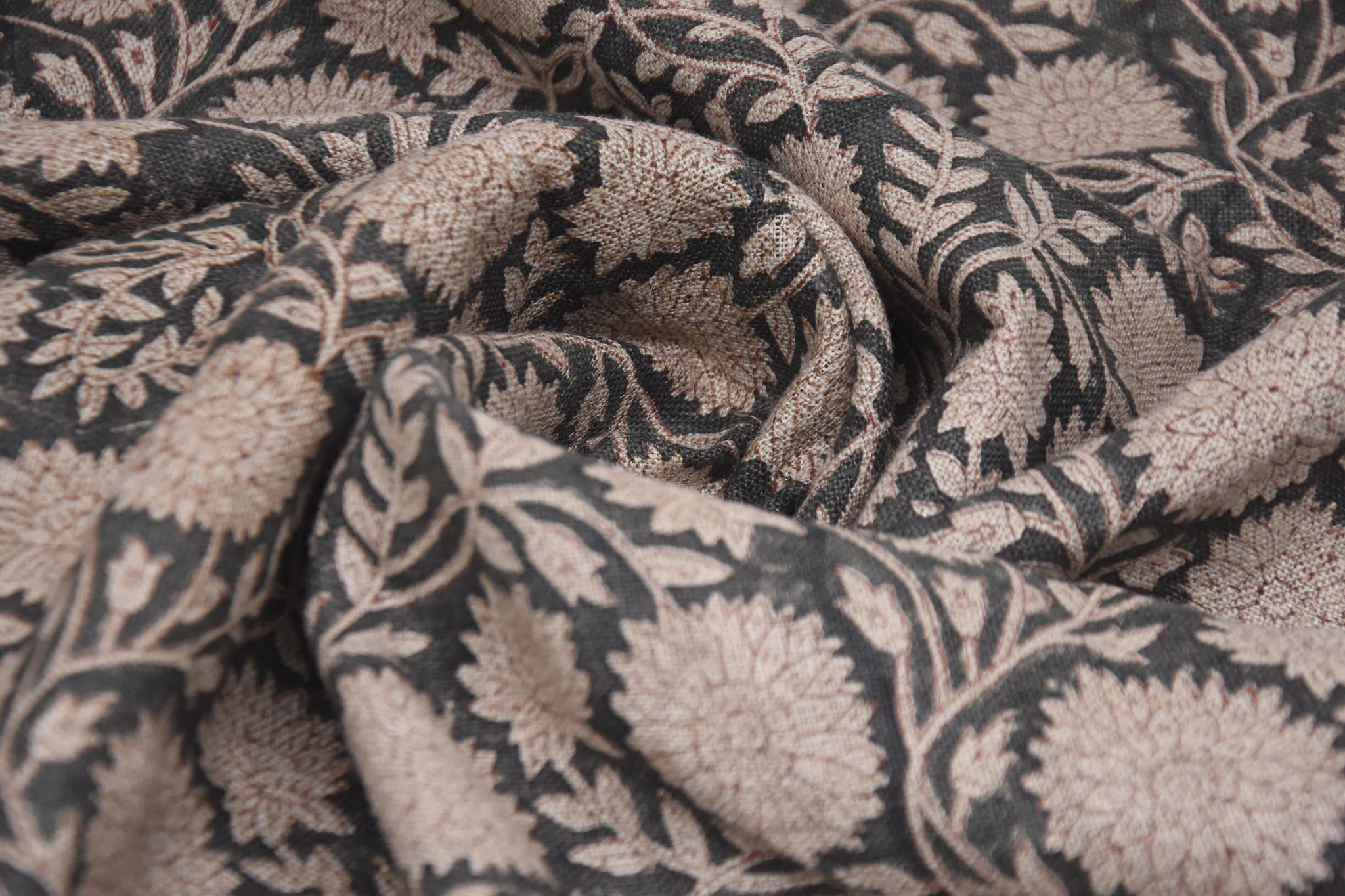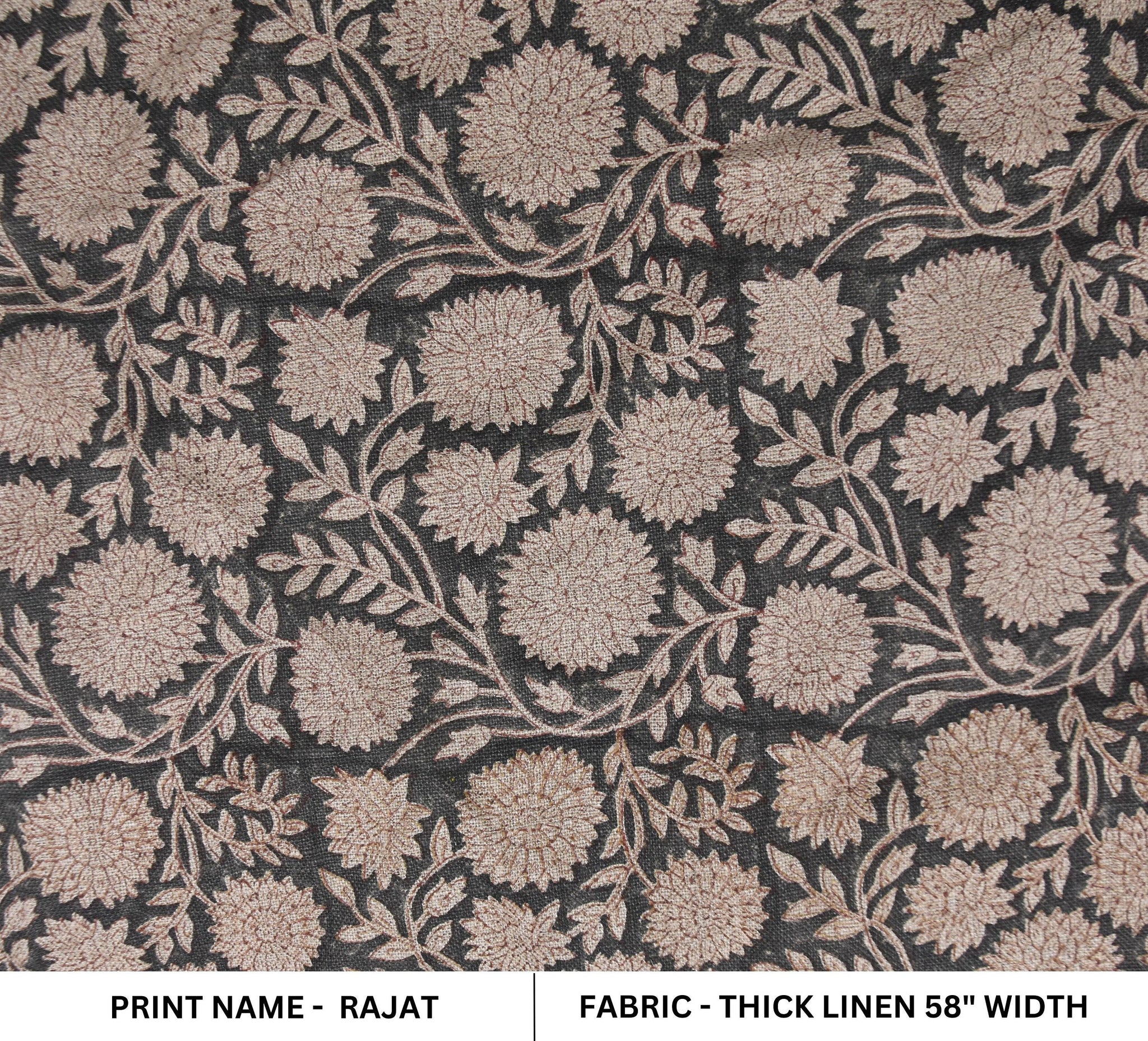 Hand Stamped Block Print Thick Linen Fabric 58" Wide in Brown Floral Design for Table Covers – RAJAT