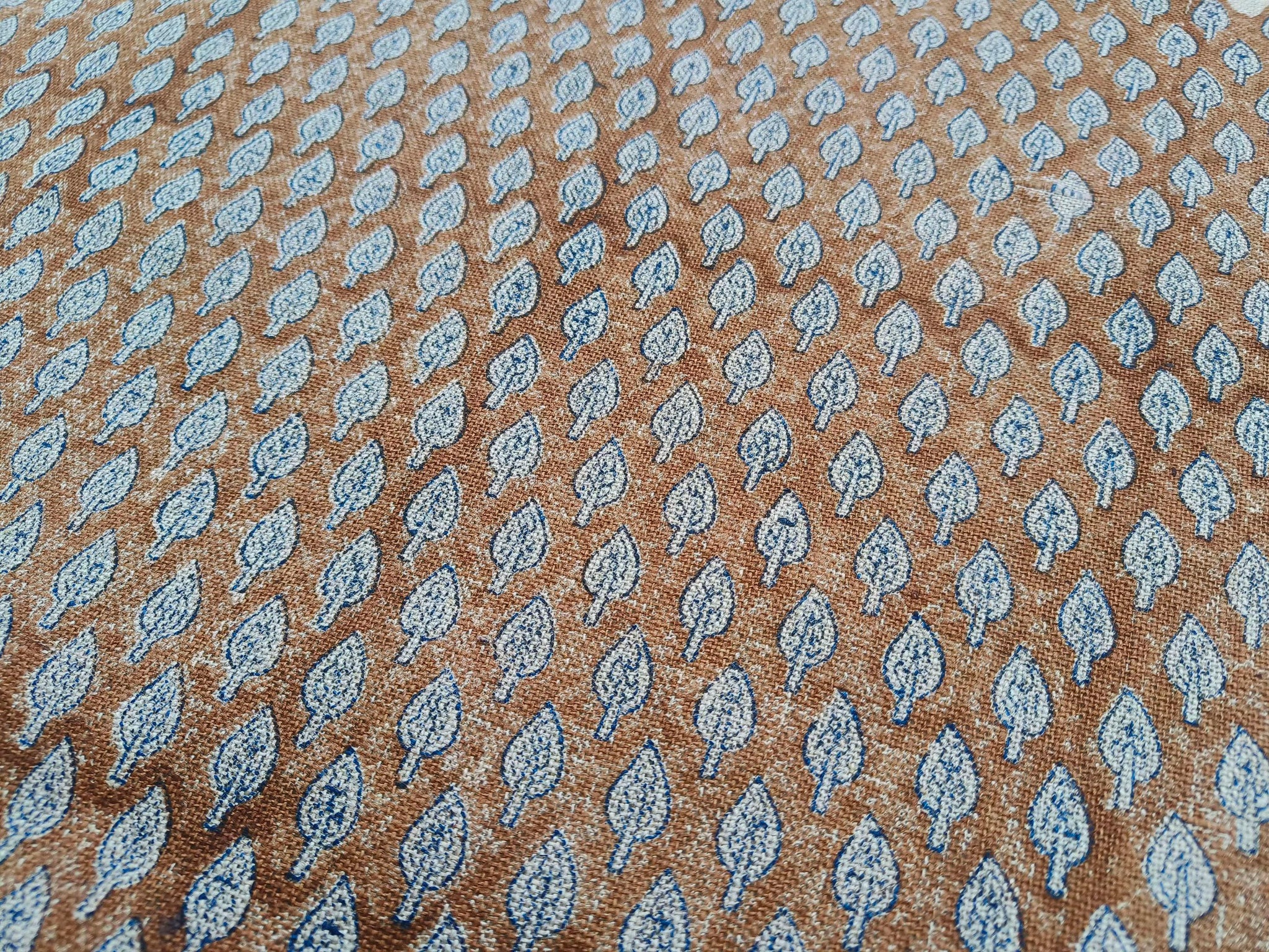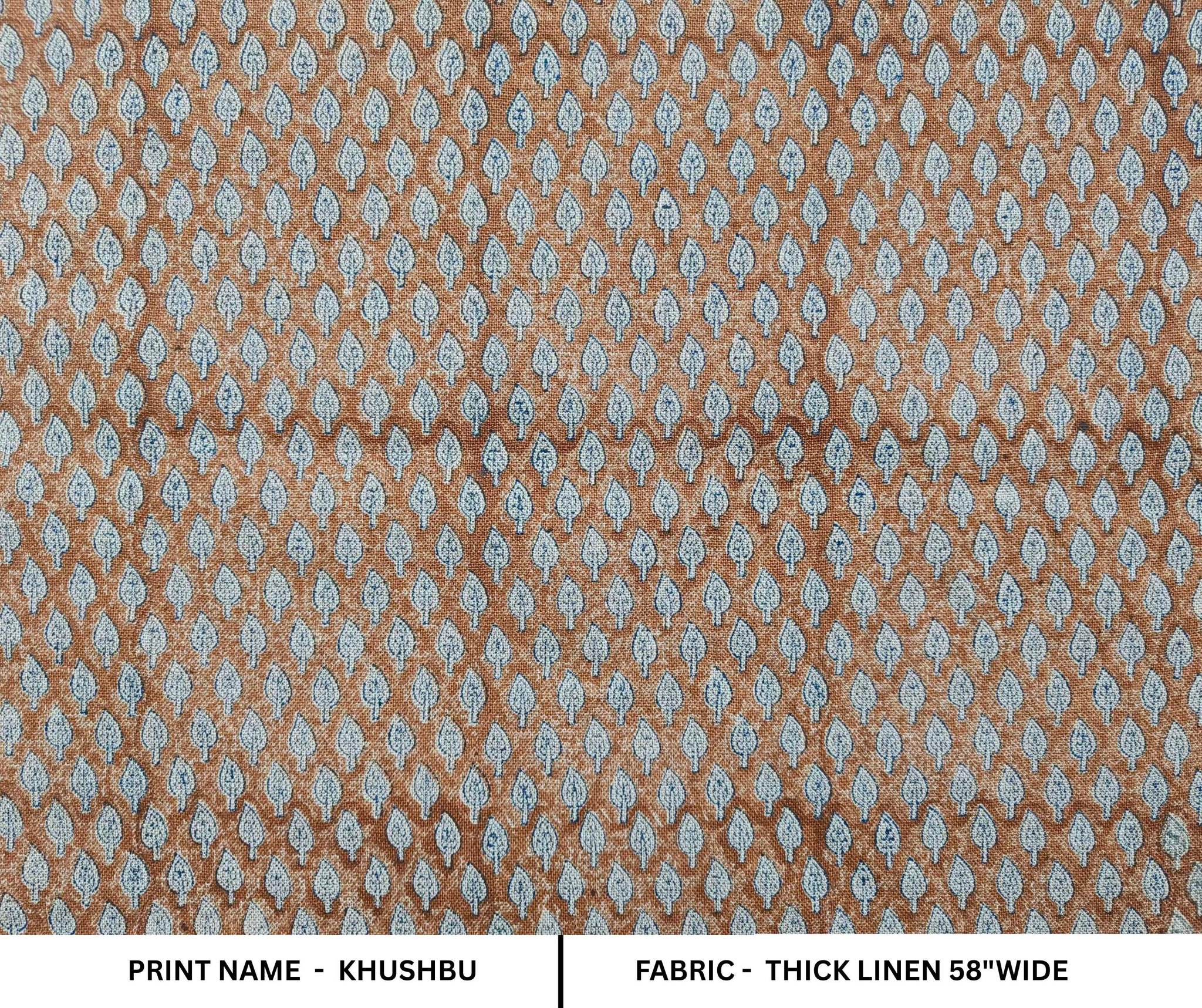 Add a rustic, artisanal charm to your living space with the KHUSHBU Handcrafted Thick Linen Fabric, featuring a brown leaf block print that blends traditional Indian craftsmanship with natural elegance. Perfect for cushions, table runners, upholstery, and other home decor projects, this fabric combines style, durability, and timeless appeal.