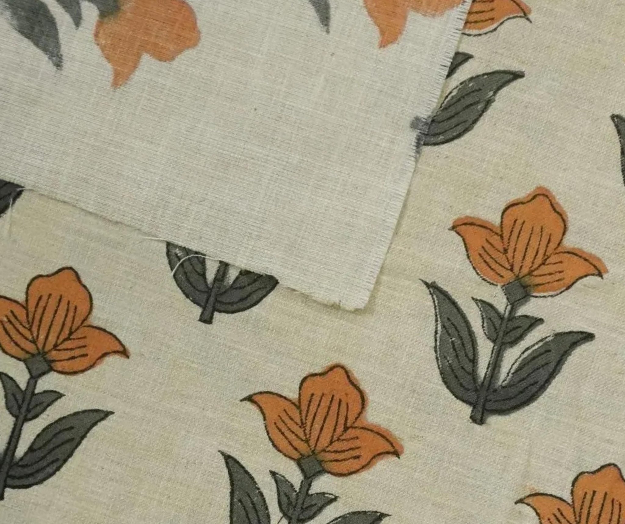 Add timeless elegance to your home with the Tulip Handmade Linen Blend Fabric. Crafted from durable linen blend, this medium-weight fabric features a sophisticated gray and brown sugar floral block print, hand-printed by skilled Indian artisans. Perfect for curtains, cushion covers, upholstery, and drapery, each piece reflects traditional craftsmanship, ensuring every yard is unique. Its breathable and sturdy texture makes it ideal for both functional and decorative purposes, enhancing any living space with artisanal charm.