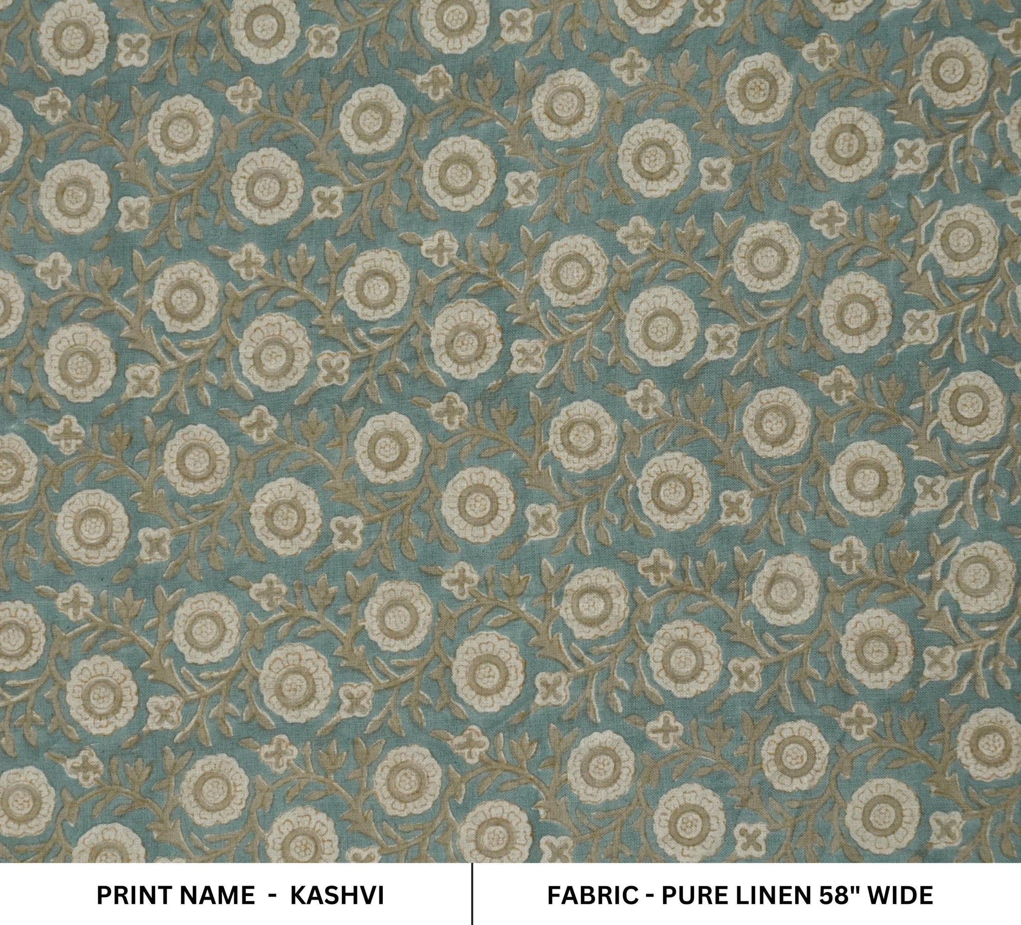 Add timeless elegance to your home with the KASHVI Handcrafted Block Printed Pure Linen Fabric, featuring a soothing combination of blue and beige floral motifs. This artisanal fabric beautifully captures the charm of traditional Indian craftsmanship, making it ideal for farmhouse-style decorative pillows, curtains and table linens.