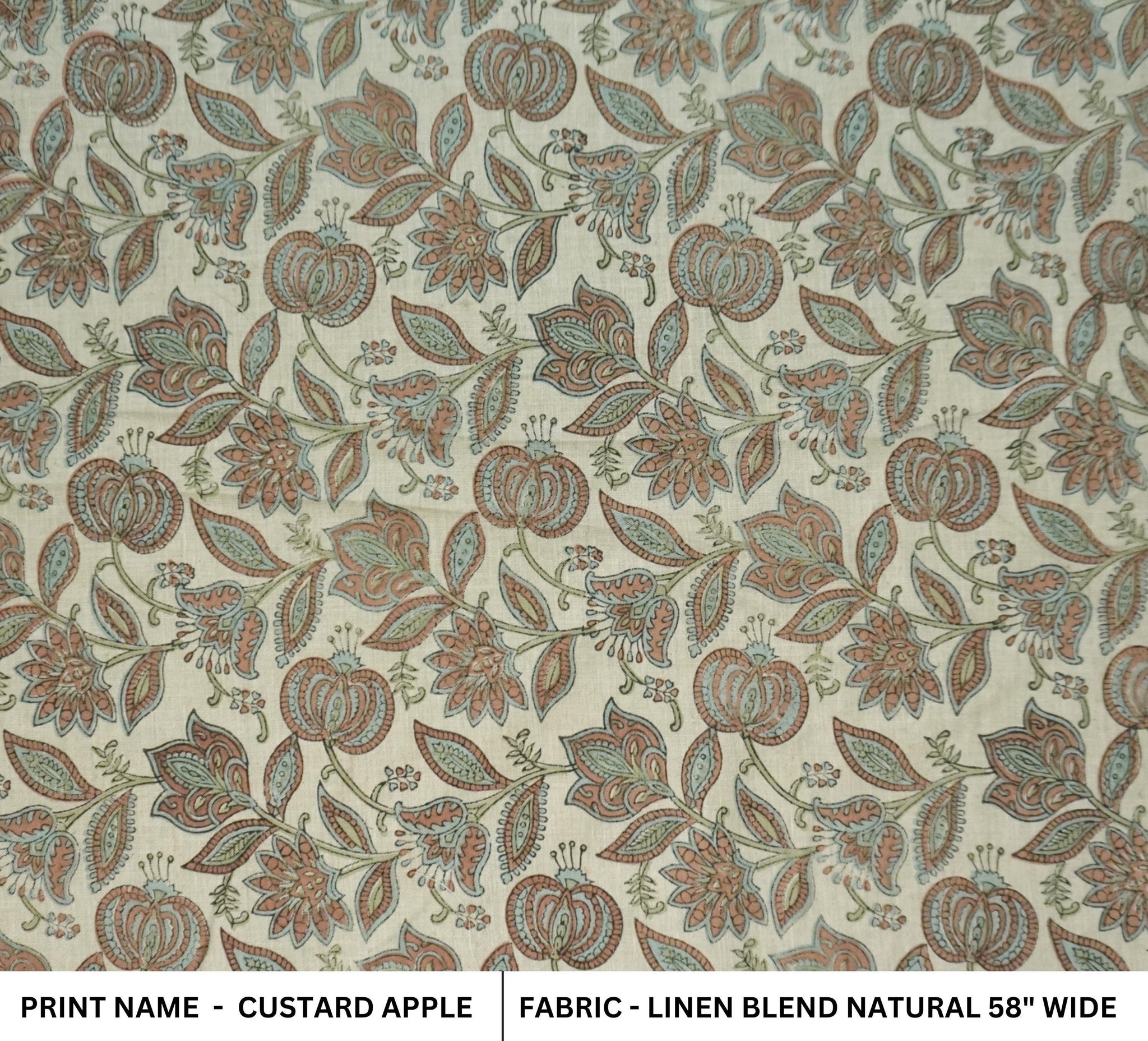 Bring a touch of rustic charm to your home with the CUSTARD APPLE Brown Floral Handmade Block Printed Linen Blend Fabric. Crafted by skilled Indian artisans, this natural fabric features intricate floral motifs that blend earthy elegance with timeless design. The soft yet durable linen blend texture makes it perfect for farmhouse-inspired cushion covers, pillowcases, table linens, or other home décor projects. Each yard reflects artisanal craftsmanship, ensuring unique variations that add authentic character to your space.
