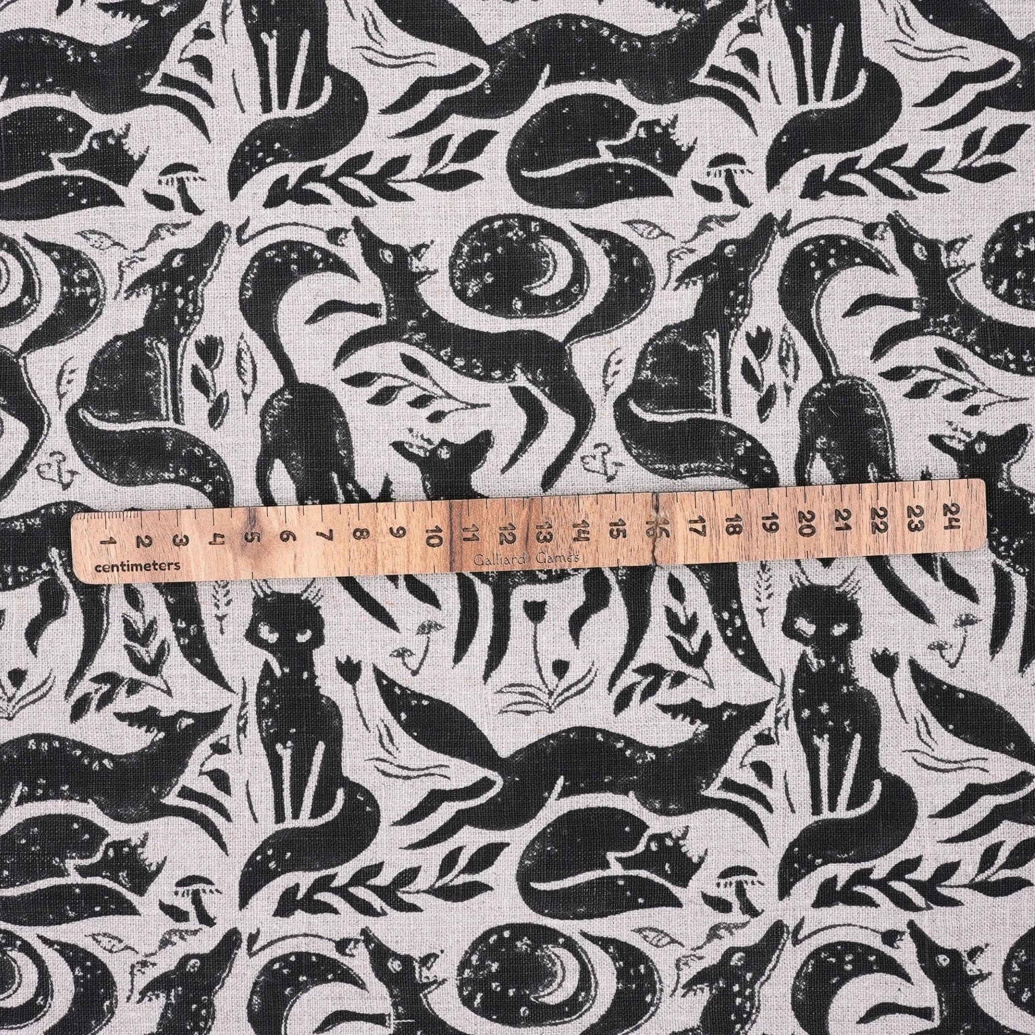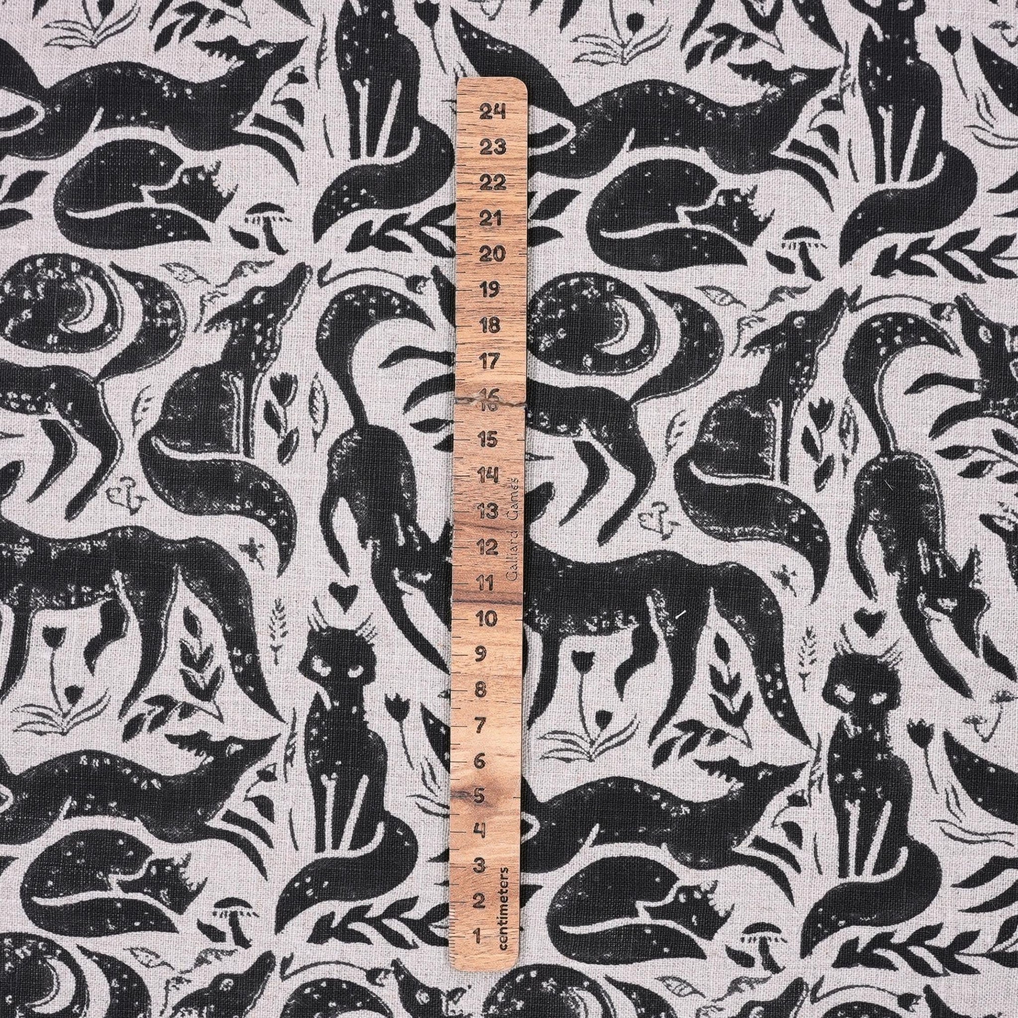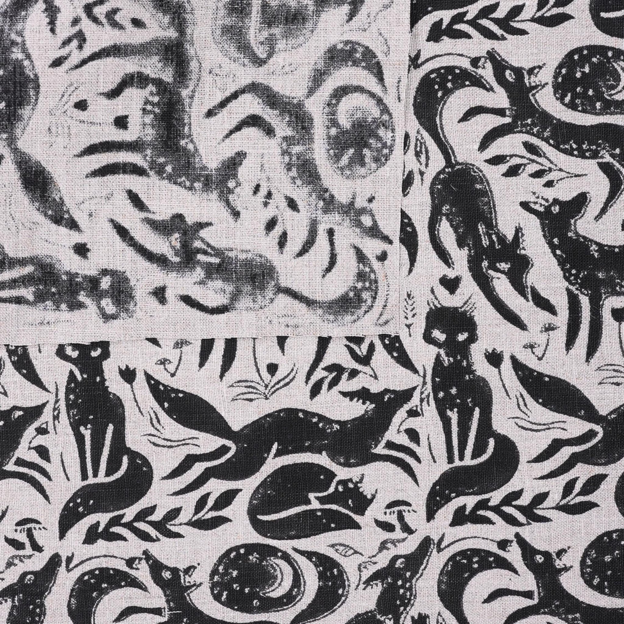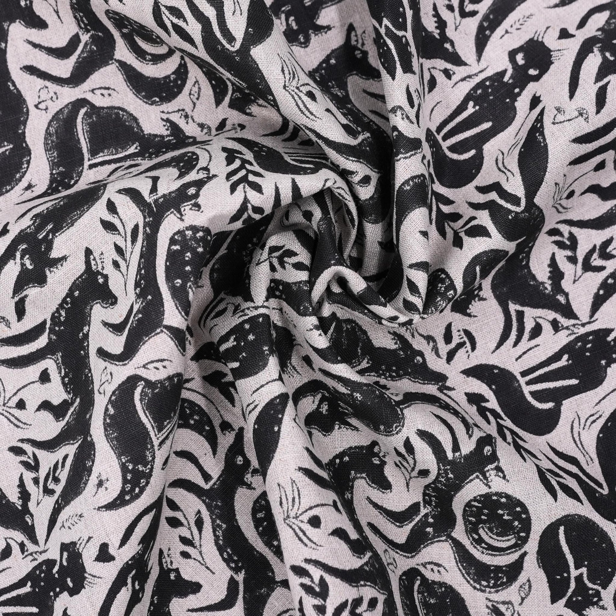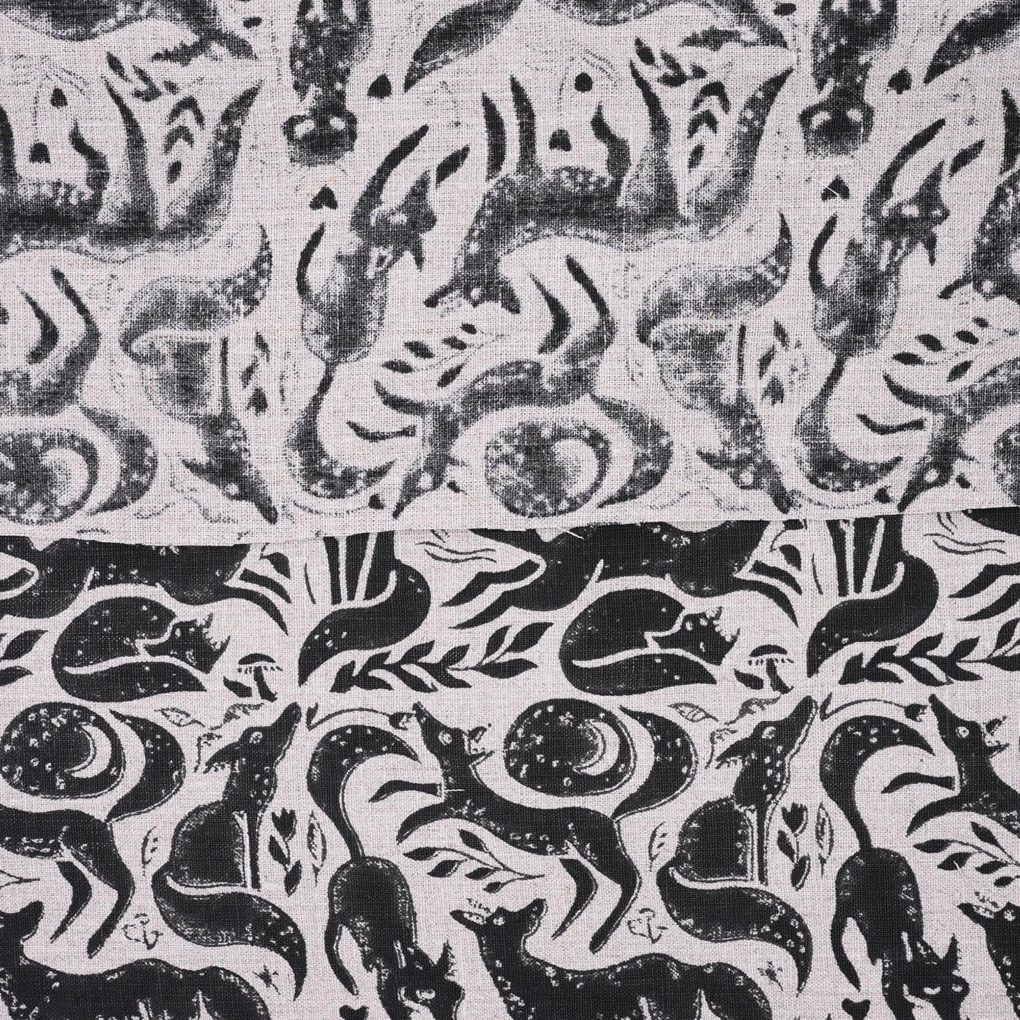 Indian Handmade Black Gehravan Print Textile Fabric on Pure Linen for Upholstery