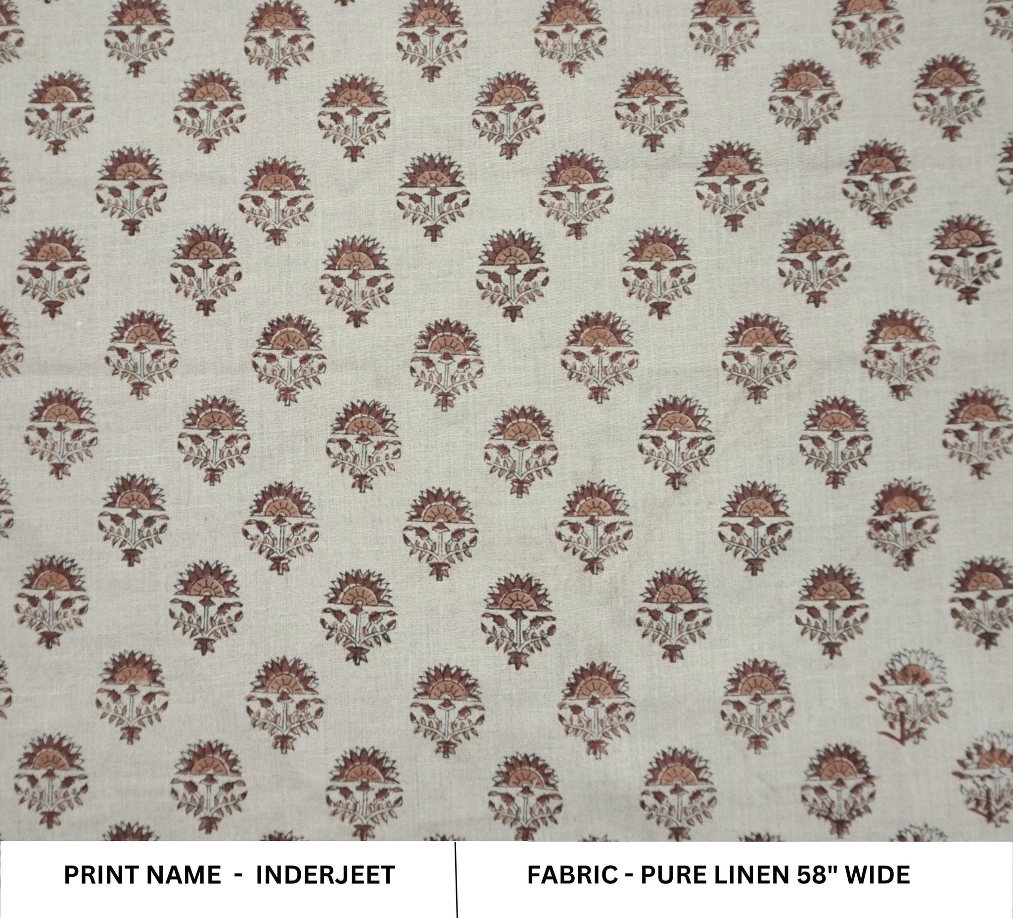Elevate your living space with INDERJEET – Hand Block Printed Decorative Pure Linen Fabric in an elegant brown and gray floral design. Crafted from premium pure linen, this fabric is perfect for creating curtains, drapery, cushion covers, or other decorative home accents.