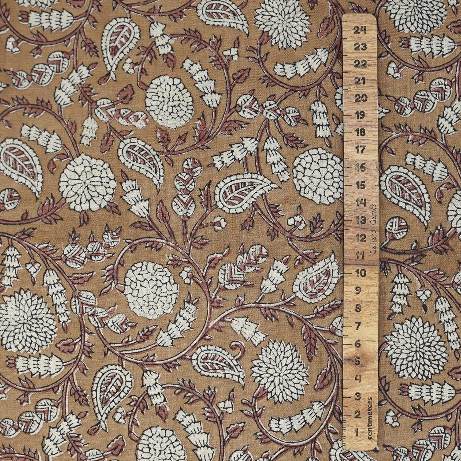 Bring warmth and festive elegance to your home with the Gopi Handcrafted Boho Throw Linen Blend Fabric. Featuring a rich bronze and red floral block print, this medium-weight fabric is perfect for decorative pillows, festive tablecloths, curtains, and accent pieces. Each fabric is carefully hand block printed by skilled artisans, ensuring unique variations that showcase the beauty of traditional Indian craftsmanship. Its durable linen blend makes it ideal for both decorative and functional use, adding artisanal charm to any space.