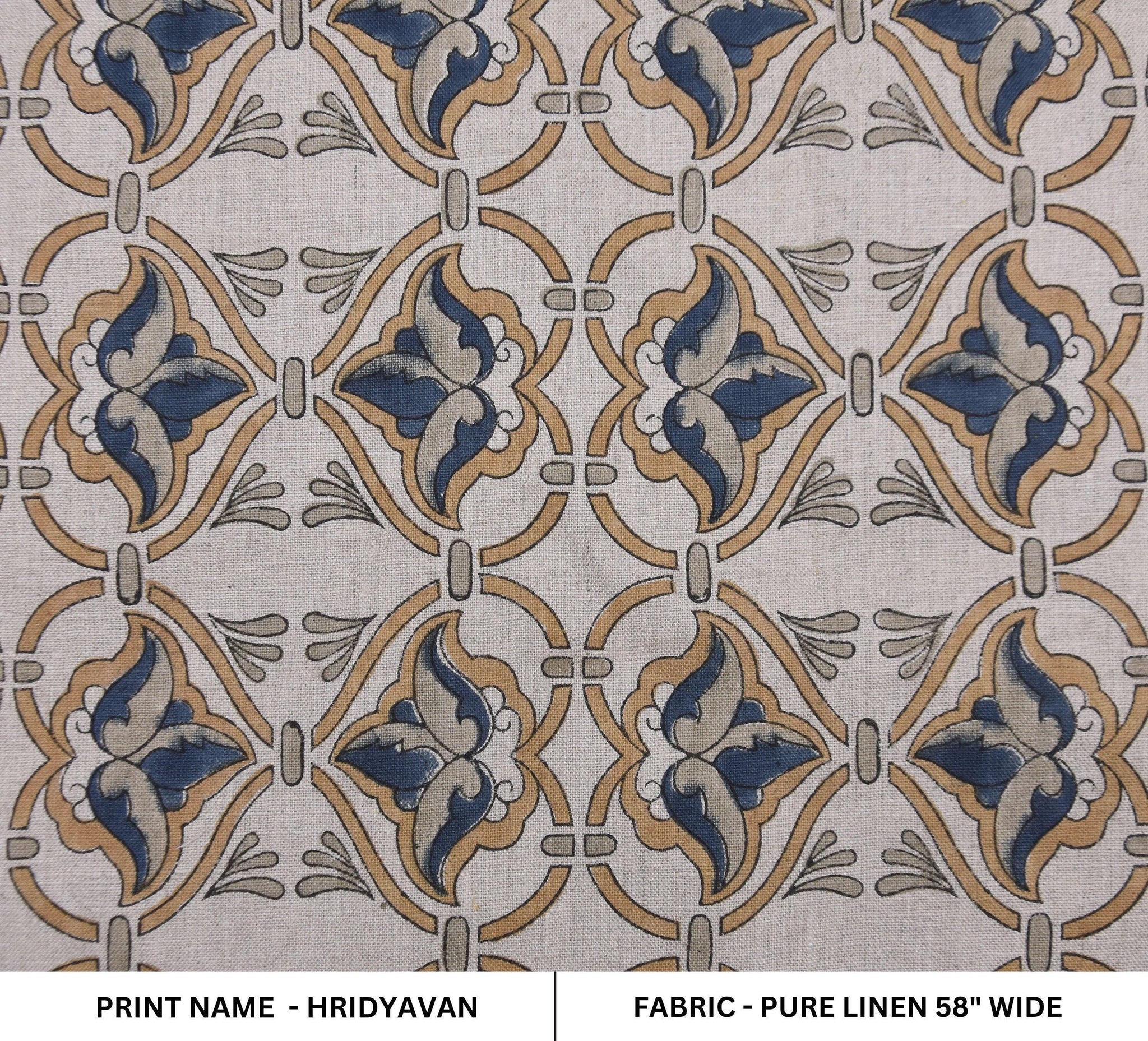 Add timeless sophistication to your home with the HRIDYAVAN Handcrafted Boho Block Printed 100% Pure Linen Fabric. Featuring a stunning charcoal and bronze floral pattern, this artisanal fabric is meticulously hand block printed by skilled Indian craftsmen. The natural linen texture brings warmth and depth, making it ideal for window curtains, cushion covers, or other elegant home decor creations. Soft yet durable, it beautifully balances luxury and craftsmanship for a refined bohemian aesthetic.