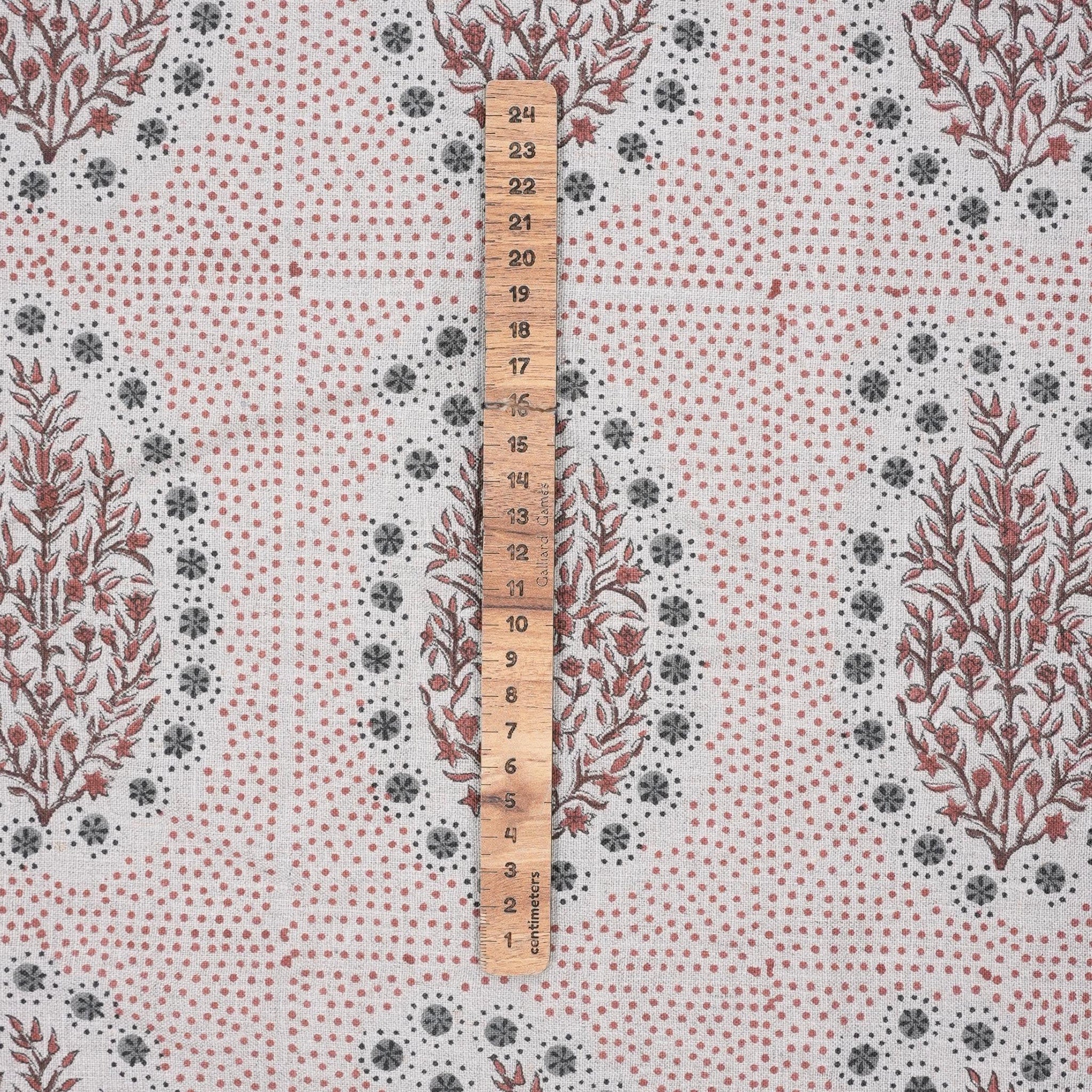 Each yard is individually hand-stamped by Fabritual's team of 200 skilled artisans using hand-carved wooden blocks that echo centuries of Indian printing tradition. The medium-weight natural linen base offers a wonderfully organic texture, breathability, and lasting durability — making Vatika a refined and versatile choice for window curtains, roman shades, cushion covers, and a broad range of elegant home décor applications.