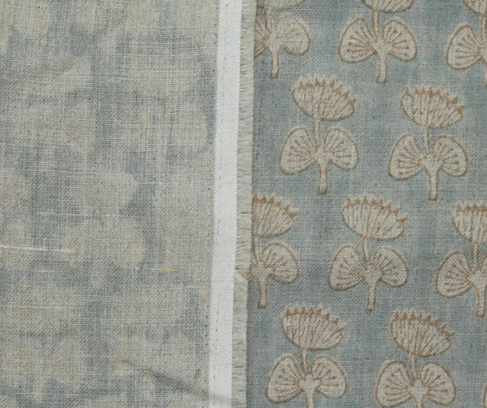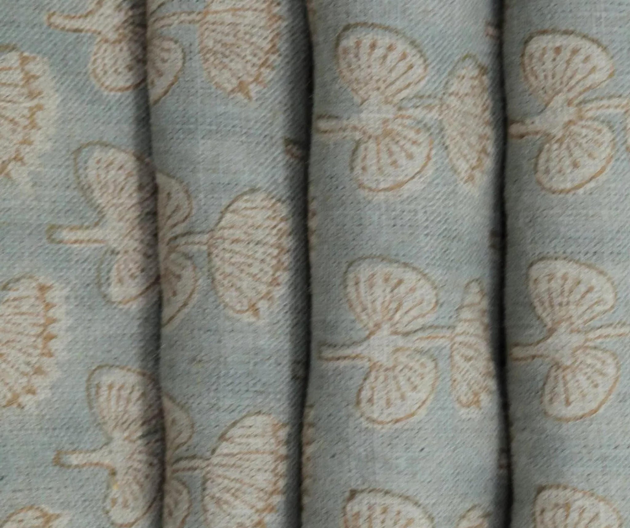 Elevate your home décor with the timeless charm of the DAMARU Handcrafted Pure Linen Fabric. Adorned with elegant brown and bluish floral block print motifs, this premium linen fabric is hand printed by skilled Indian artisans using traditional wooden block techniques. The 100% pure linen base offers a naturally soft texture and excellent breathability while maintaining long-lasting durability, making it ideal for upholstery, drapery, cushions, table linens and creative sewing projects. Each yard carries a unique artisanal touch with slight print variations that highlight the beauty of handcrafted work. Perfect for boho, farmhouse, rustic, and modern interiors, this fabric adds warmth, sophistication, and cultural elegance to any space.