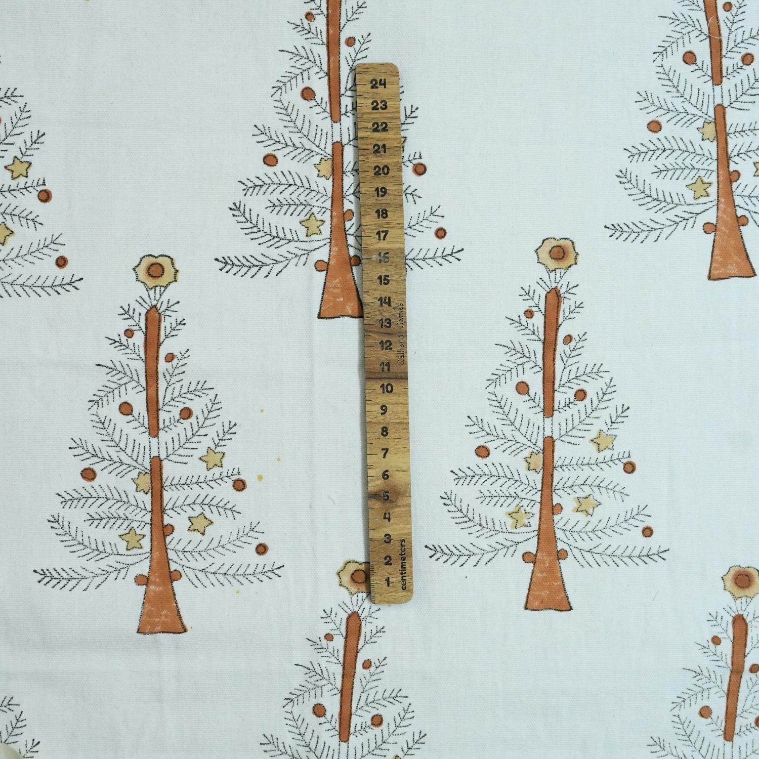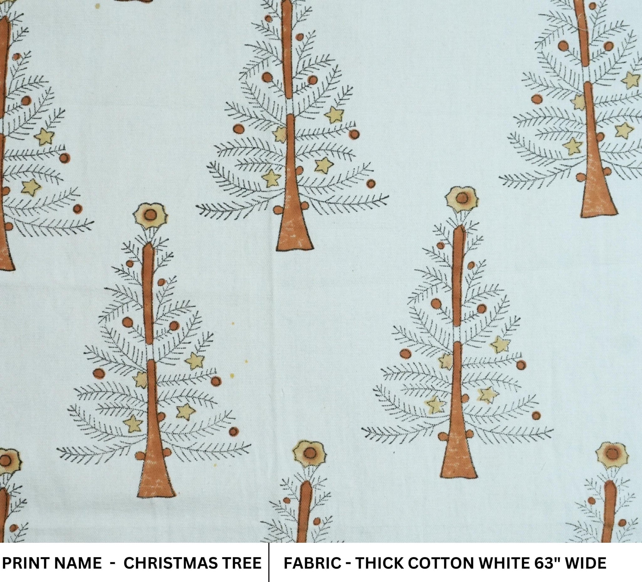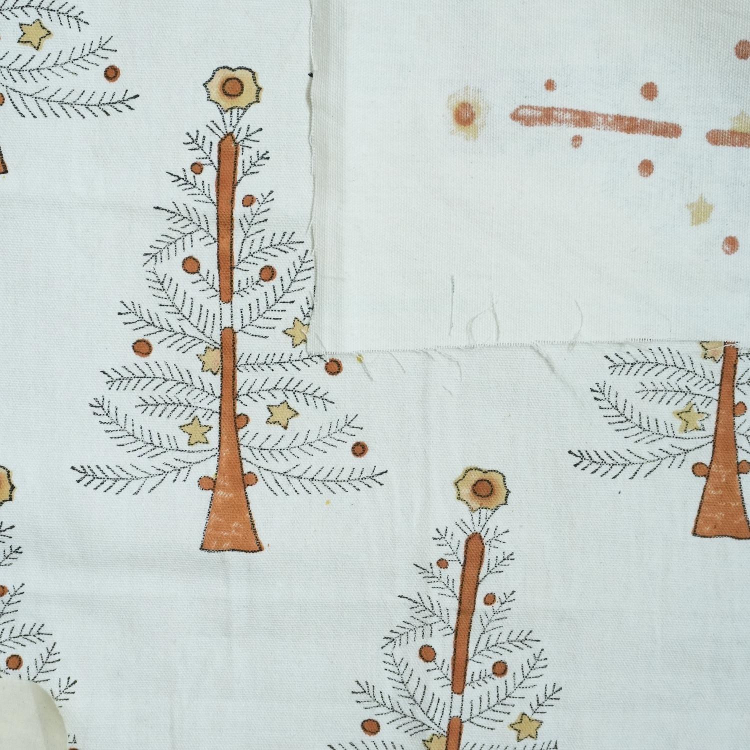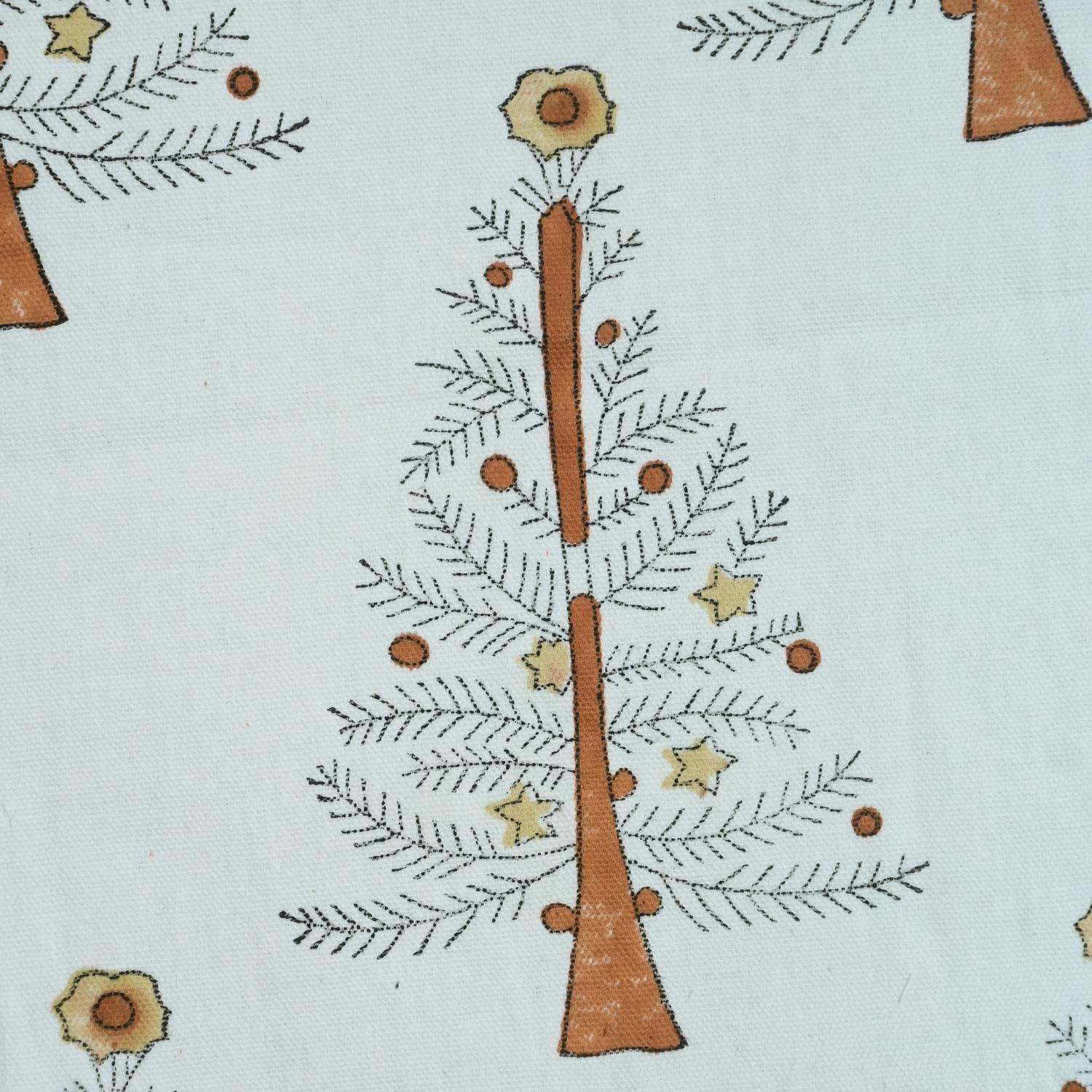 Indian Handmade Brown Block Printed Floral Christmas Decor Thick Cotton White Fabric – CHRISTMAS TREE