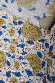 NOTE: The fabric featured in the image above is Off-White Linen 58" W. Immerse yourself in the elegance of Fabritual’s KARWACHAUTH Off-White Linen hand block print fabric, a luxurious home décor fabric that beautifully integrates heritage techniques with modern design.Featuring delicate floral motifs, this stunning home décor fabric is ideal for upholstery projects. Whether on chairs, sofas, curtains or cushions, it introduces a hint of sophistication while maintaining strength and resilience for everyday use. Hand-stamped and dyed with vegetable-based dyes, this eco-conscious, heavy-weight linen reflects Fabritual’s dedication to sustainability and the preservation of traditional Indian craftsmanship in home décor. Fabritual, with its team of 200 highly skilled artisans, has refined an organic hand block printing technique on heavy-duty linen and cotton. This breakthrough innovation is perfect for a wide range of home décor applications, combining tradition with modern durability.