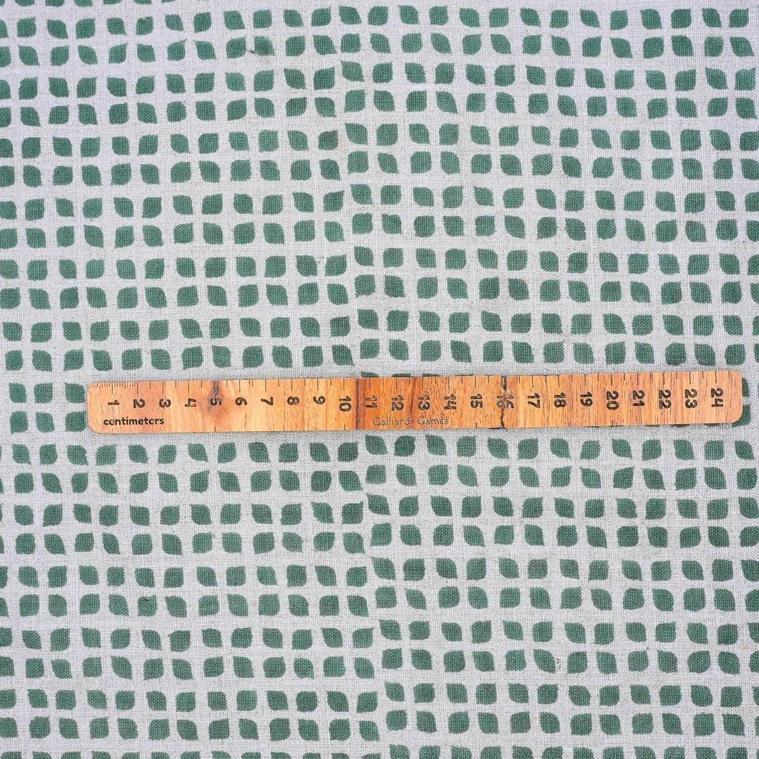 Pure Linen Hand Block Printed Sheen Green Floral Fabric for Couch Cover - Mandala