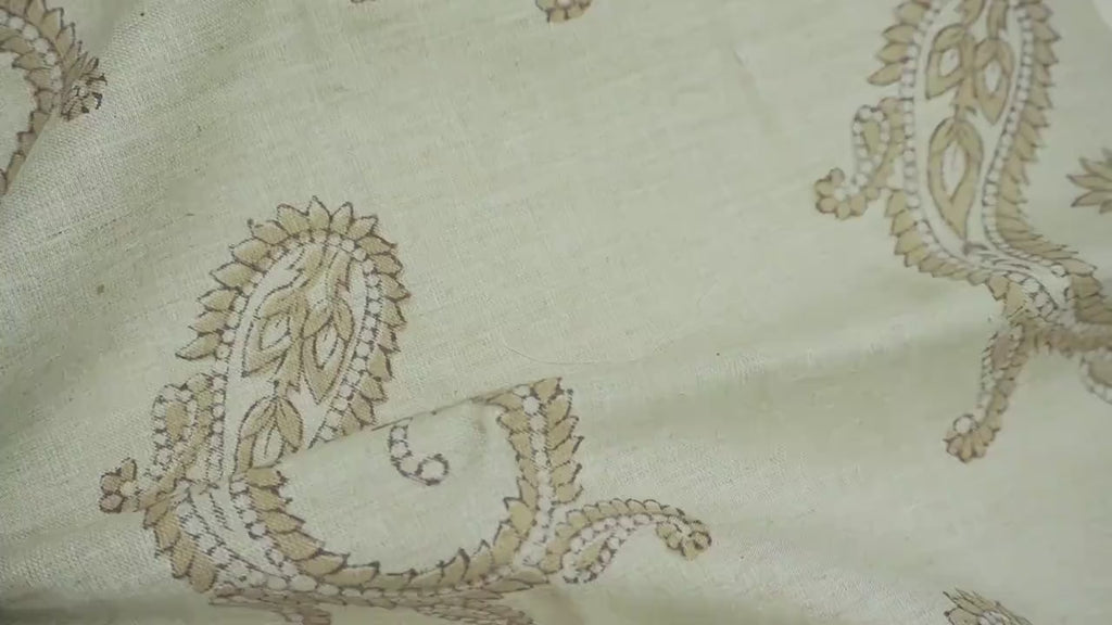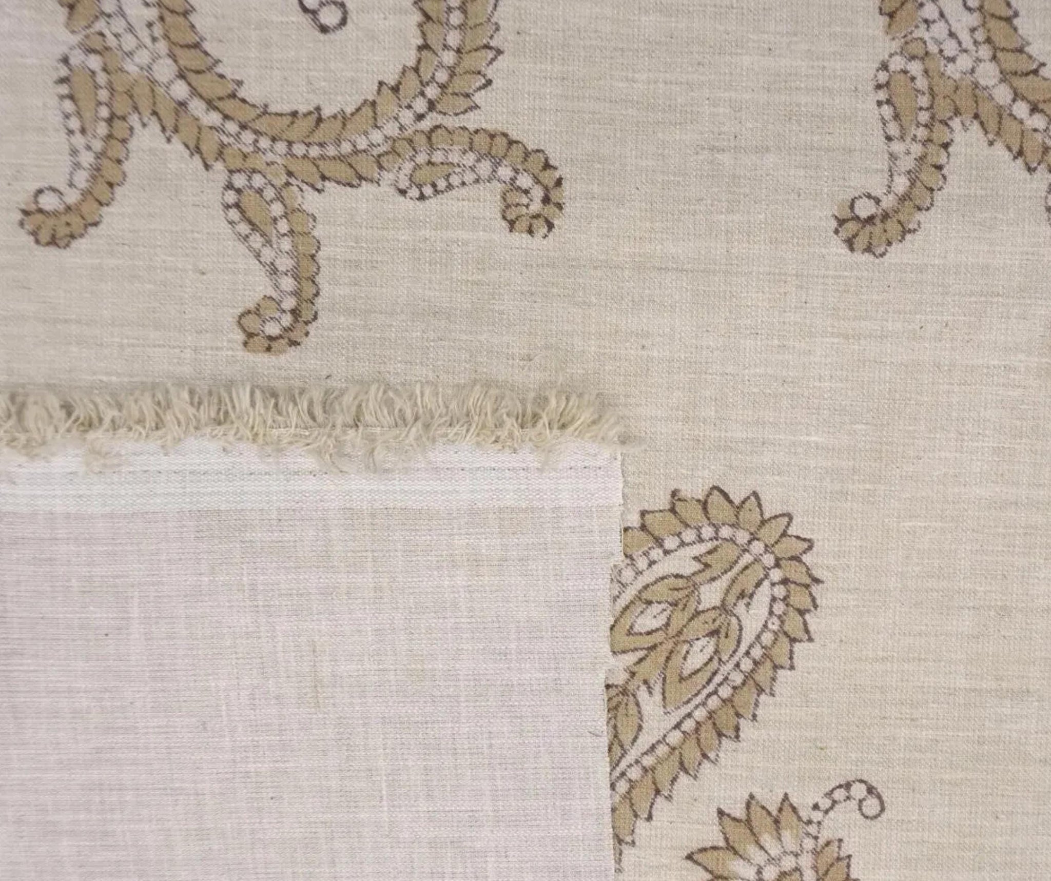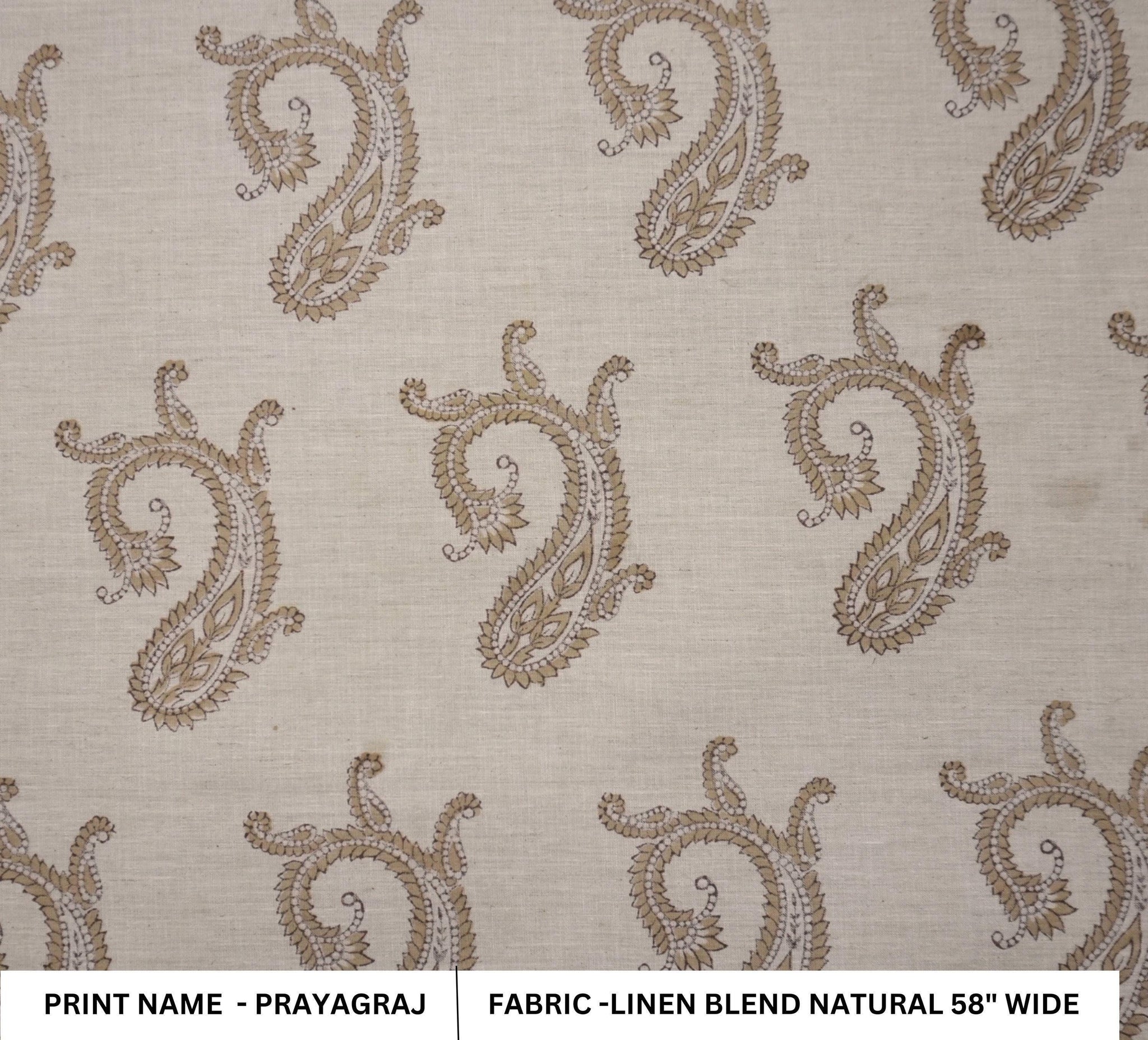 Bring timeless elegance and artisanal charm to your home with the Prayagaraj Print Handmade Gray and Brown Floral Natural Linen Blend Fabric. Featuring a graceful floral pattern in soft gray and brown tones, this fabric reflects the beauty of traditional Indian block printing while adding warmth and sophistication to any interior décor. Carefully handcrafted by skilled artisans using wooden block printing techniques, each yard carries unique details that highlight authentic handmade craftsmanship. Made from a medium-weight natural linen blend and 58 inches wide, the fabric offers a soft yet structured texture that drapes beautifully, making it ideal for Roman shades, cushion covers, curtains, table linens, and other decorative home décor projects. Perfect for modern, farmhouse, bohemian, or classic interiors, the Prayagaraj fabric brings natural texture, heritage design, and refined style to any living space.