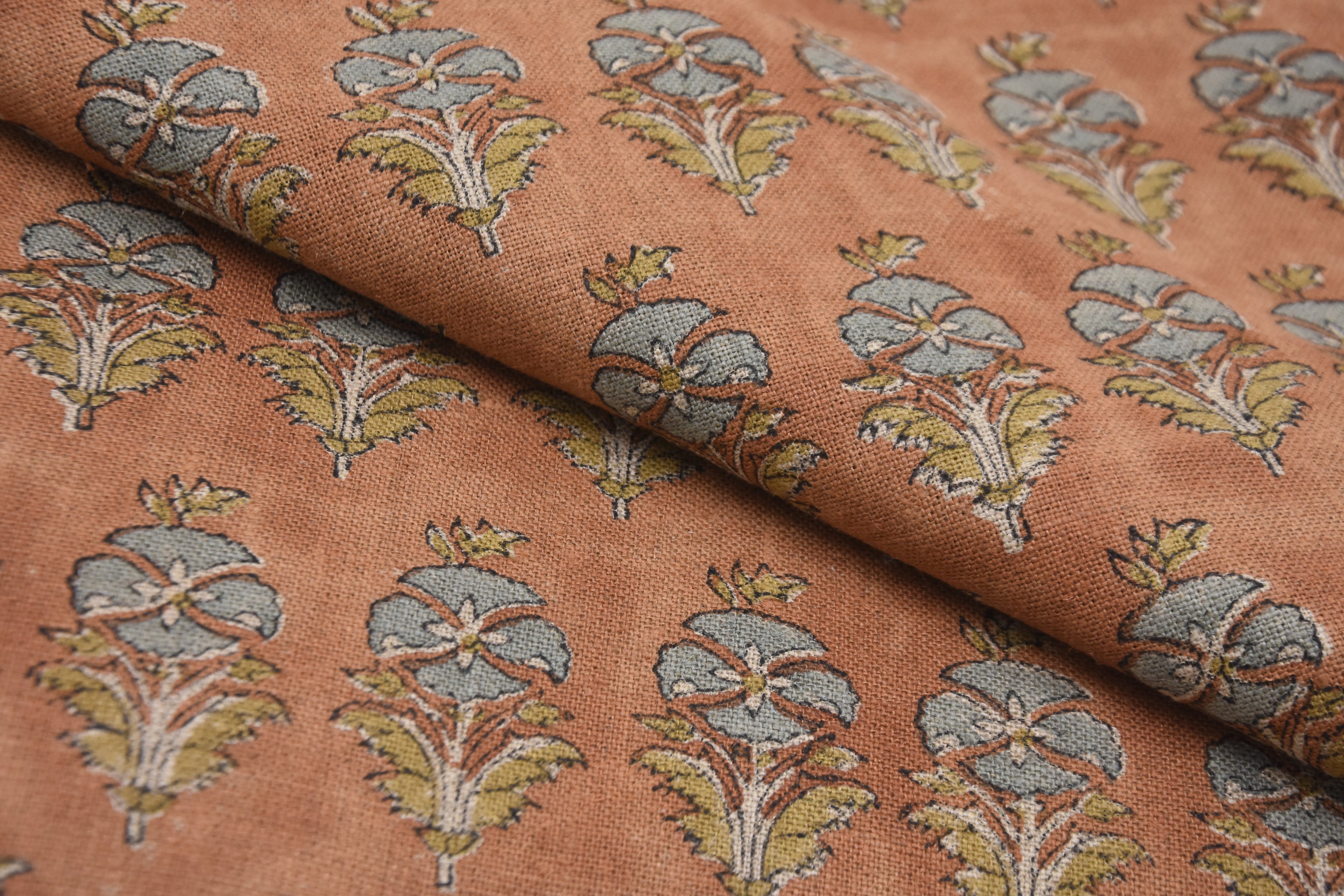 Elevate your designs with Fabritual’s MOR MUKUT Thick Linen hand block print fabric, a luxurious home decor fabric that merges ancient craft with modern grace. A sophisticated choice for home décor, this fabric boasts intricate floral designs that bring a graceful touch to any room. Its durability makes it ideal for upholstering chairs, sofas, and cushions, offering timeless beauty that lasts years. Hand-stamped and dyed with vegetable-based dyes, this eco-conscious, heavy-weight linen reflects Fabritual’s dedication to sustainability and the preservation of traditional Indian craftsmanship in home décor. Fabritual is a collective of 200 skilled hand block print artisans who have pioneered a new technique for organic block printing on heavy-duty linen and cotton. This innovative process offers exceptional quality, making it ideal for any home décor project.