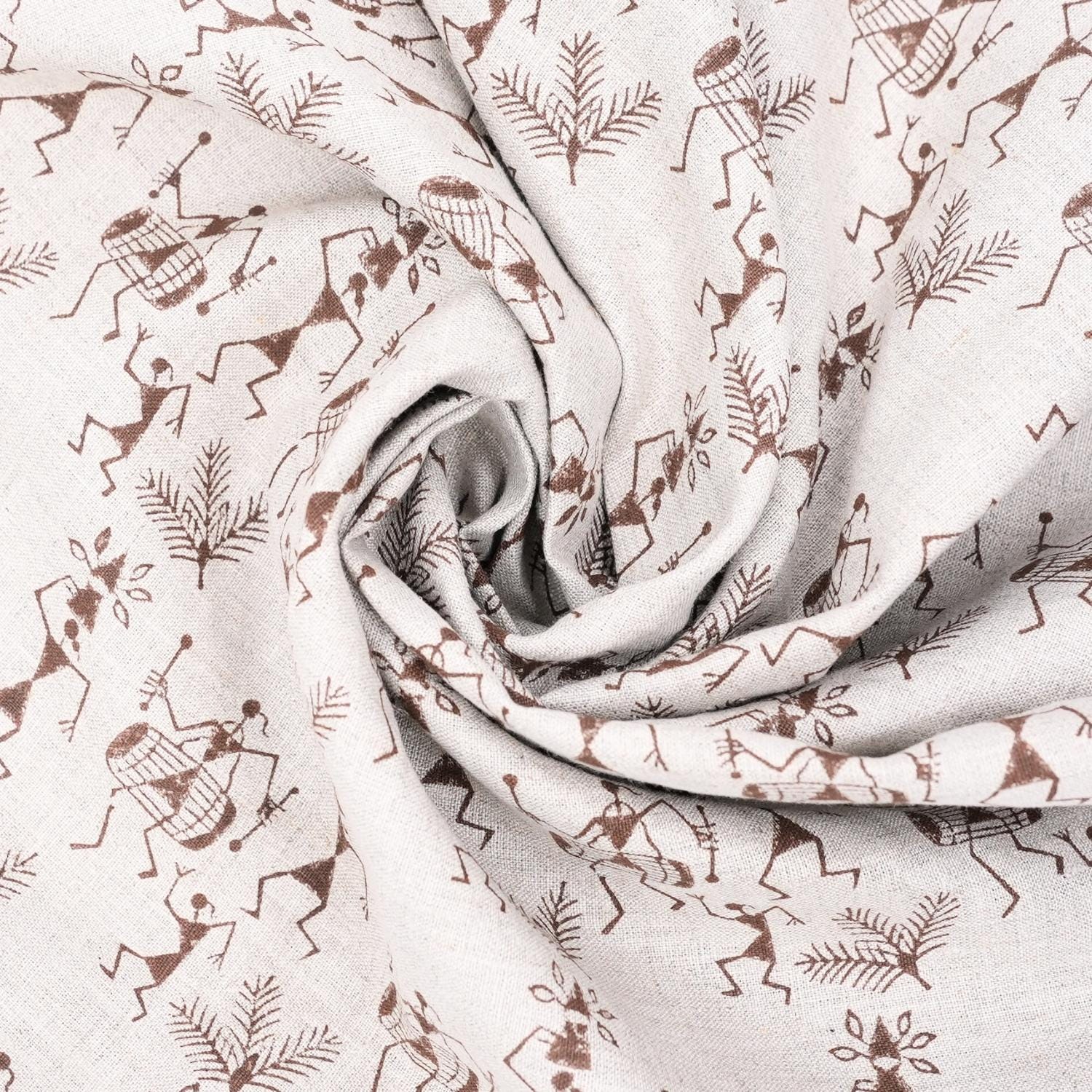 Discover the soulful artistry of Dhun — a beautifully handcrafted block print pure linen fabric by Fabritual. The name Dhun, meaning a melodious tune, is perfectly reflected in the rhythmic and harmonious beige and brown floral pattern that flows gracefully across every yard of this exquisite fabric.