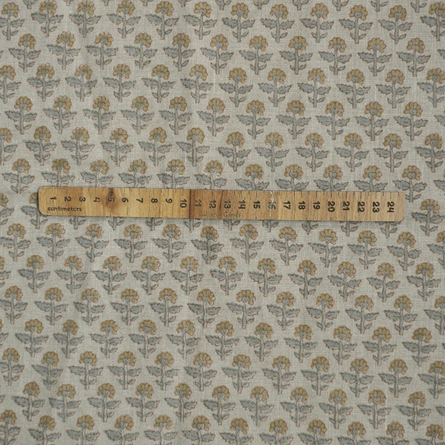 Pure Linen Hand Block Printed Gray and Sage Green Floral Fabric for Table Napkins & Decorative Home Accents - GULMOHAR