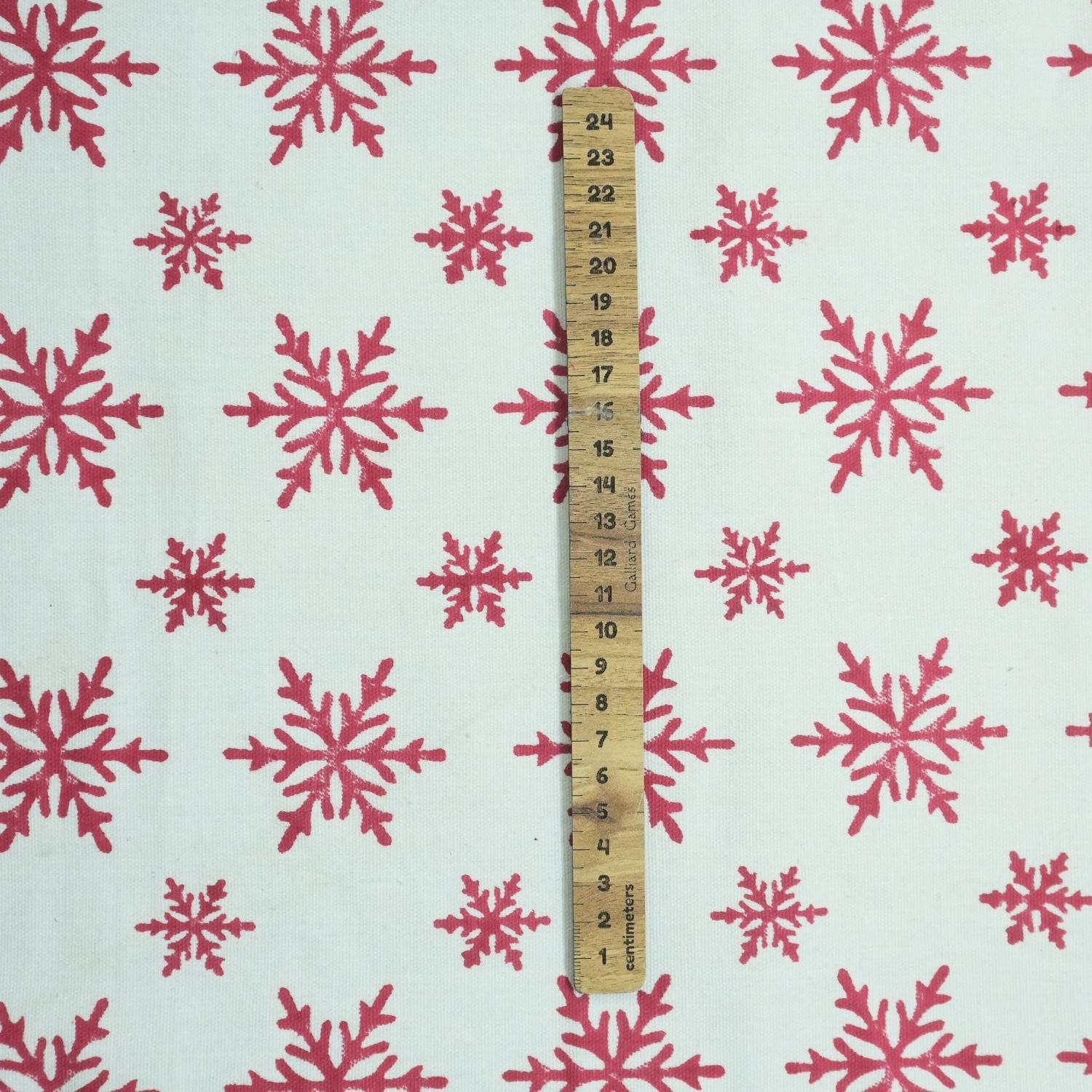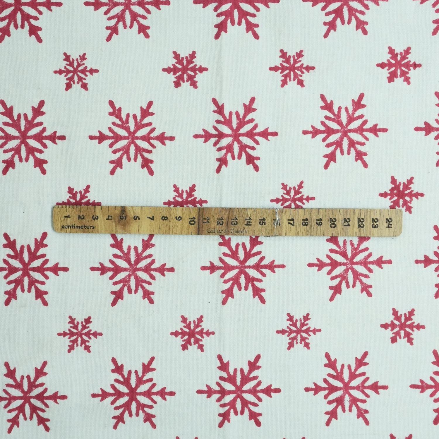 Red Floral Thick Cotton White Handmade Block Printed Throw Fabric for Home Decor - SPARKLE