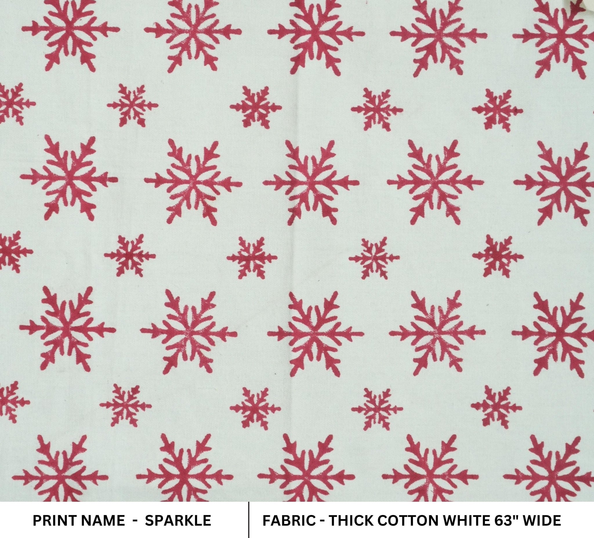 Bring festive charm to your home with the SPARKLE Red Floral Thick Cotton White Fabric. Handcrafted using traditional block printing techniques, this artisanal fabric features vibrant red floral motifs on soft, durable white cotton.