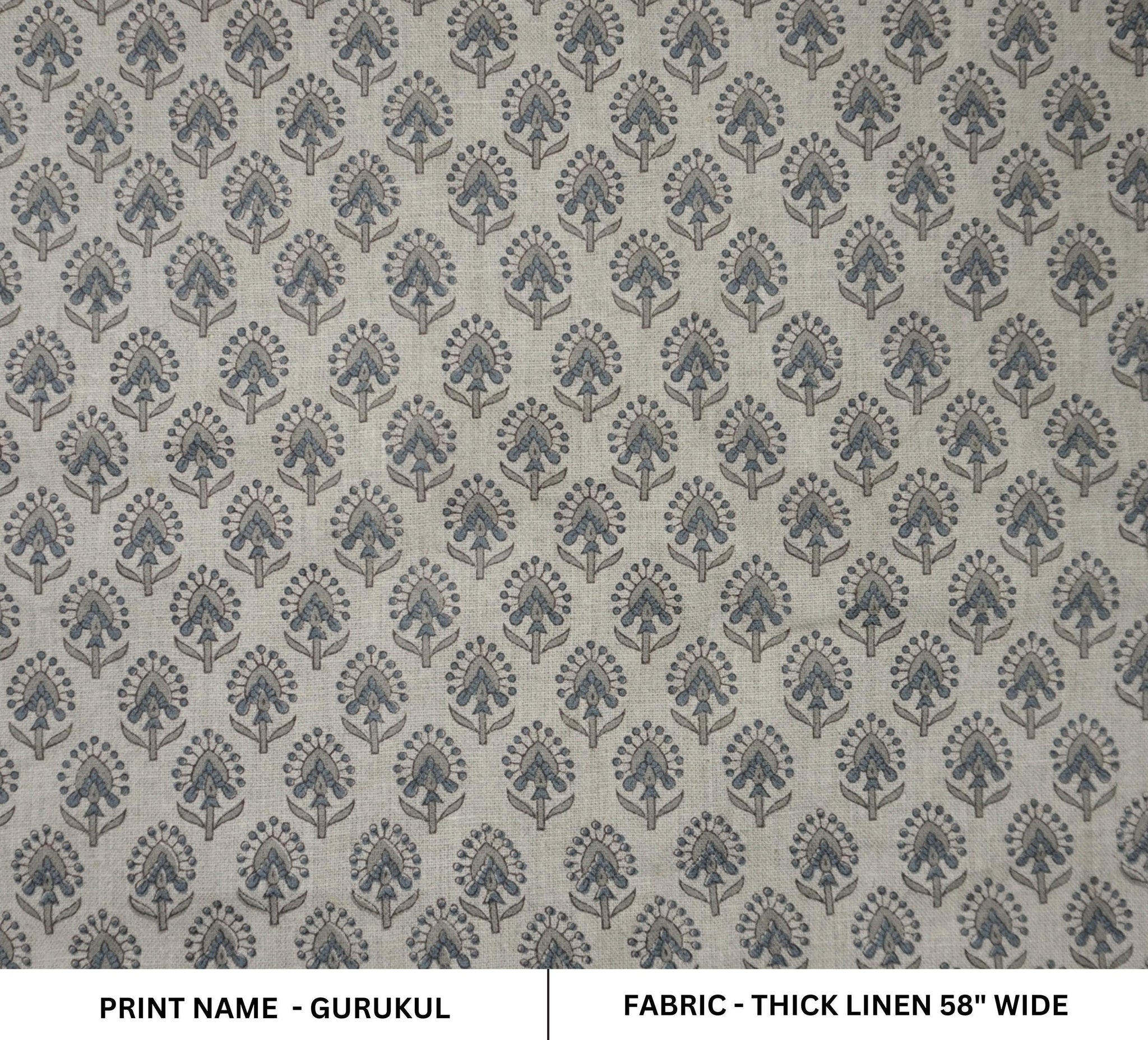 Add elegance and durability to your home with GURUKUL – Thick Linen Heavyweight Gray Floral Indian Block Printed Fabric. Crafted from premium heavyweight linen, this fabric is perfect for cushions, upholstery, and other home décor projects.