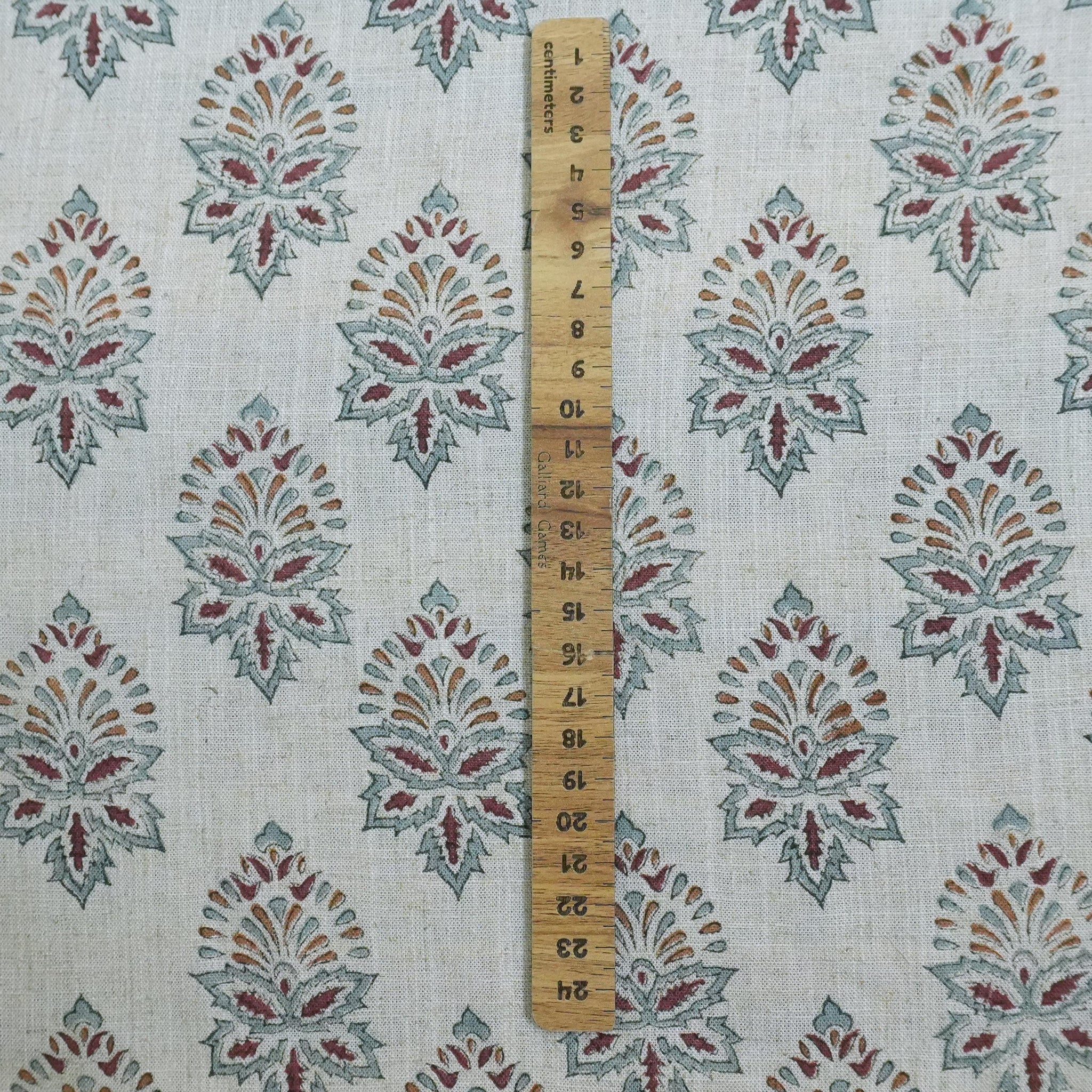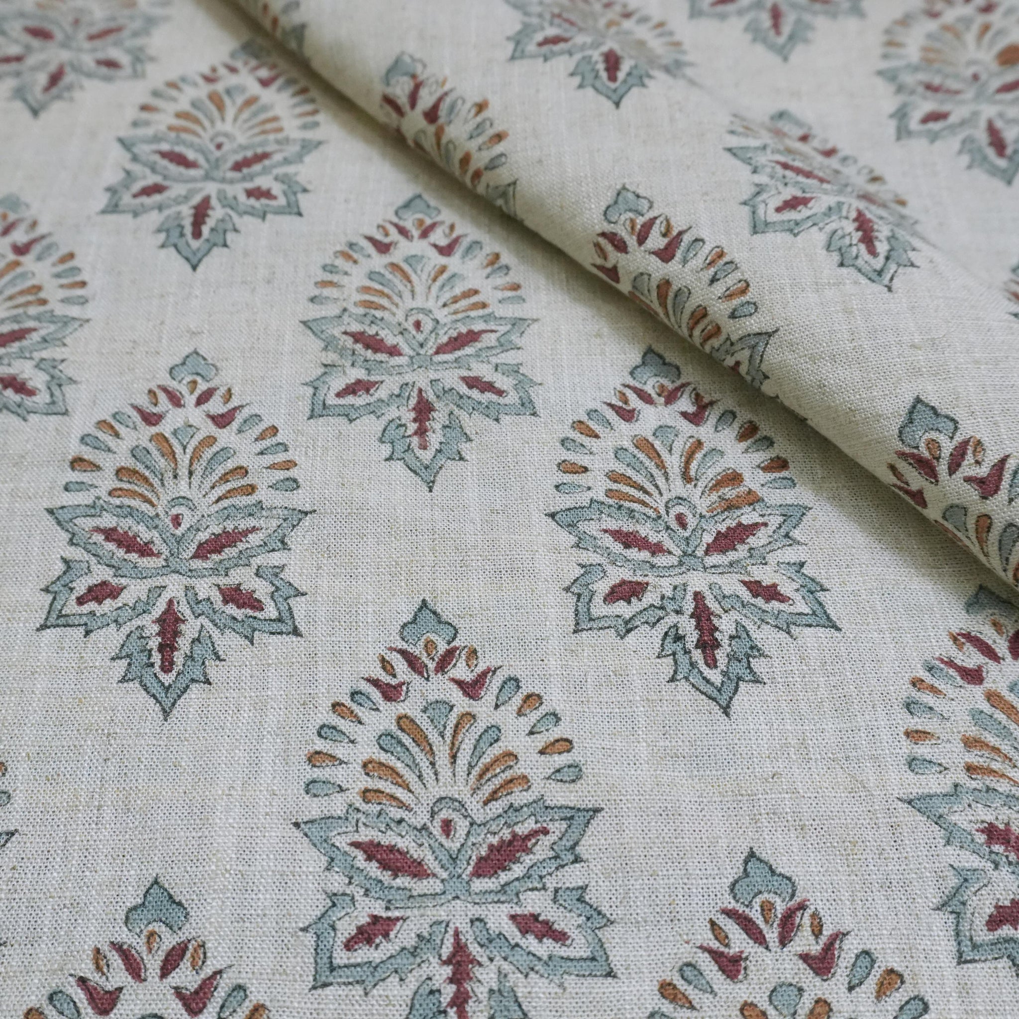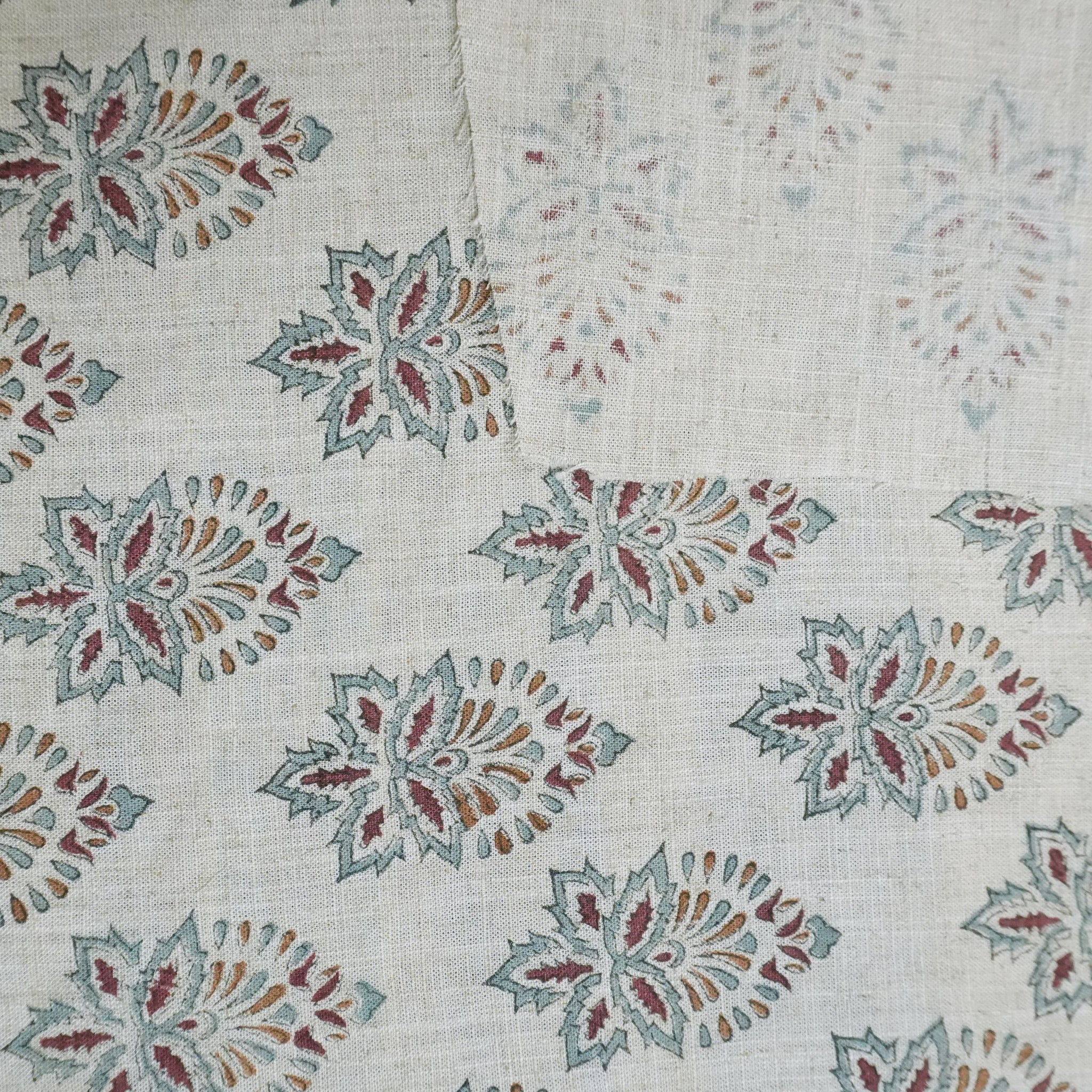 Add timeless elegance to your home with the Samraat Hand Block Printed Thick Linen Fabric. Featuring a refined brown and gray floral design, this 58" wide fabric is crafted using traditional Indian block printing techniques. Its durability and sophisticated look make it perfect for pillow covers, upholstery, curtains, and home décor accents.