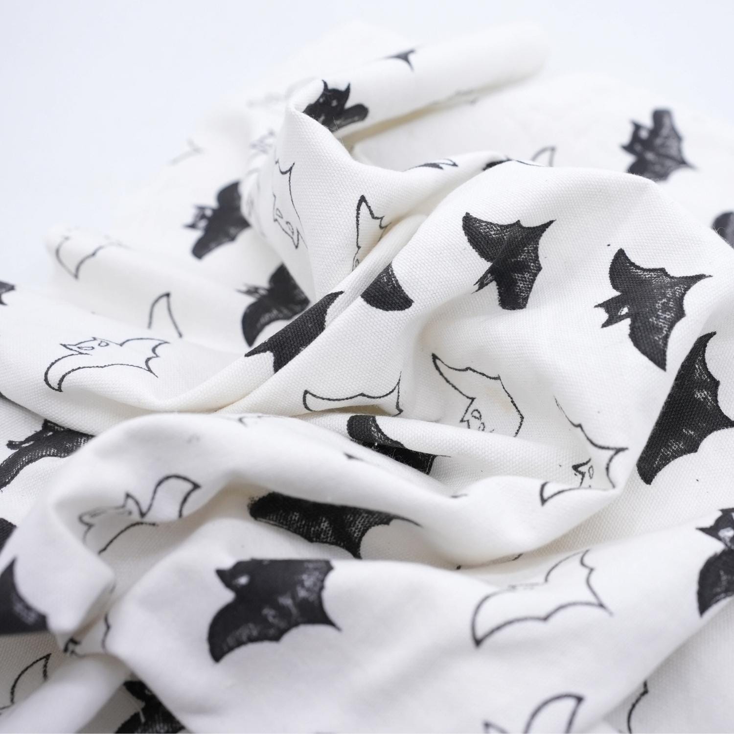 Add a playful seasonal touch to your decor with this Hand Block Print Cushion Cover Fabric crafted on thick cotton white in a striking white and black bat design. The bold bat motif printed on a crisp white base creates a fun yet stylish look, making it perfect for Halloween decor, themed parties, or unique home accents. The contrasting black design stands out beautifully, giving the fabric a modern decorative appeal while keeping the charm of handcrafted textile art.