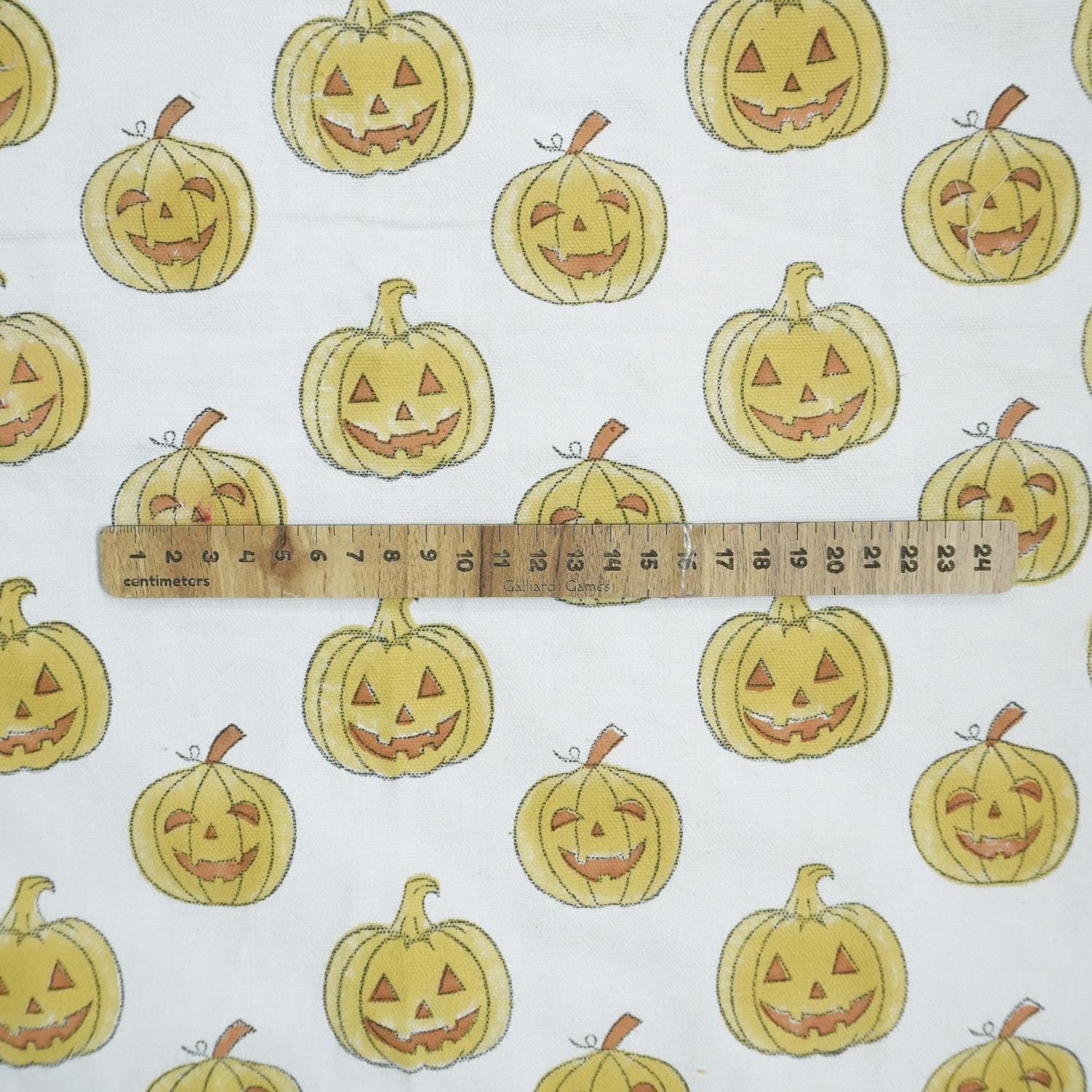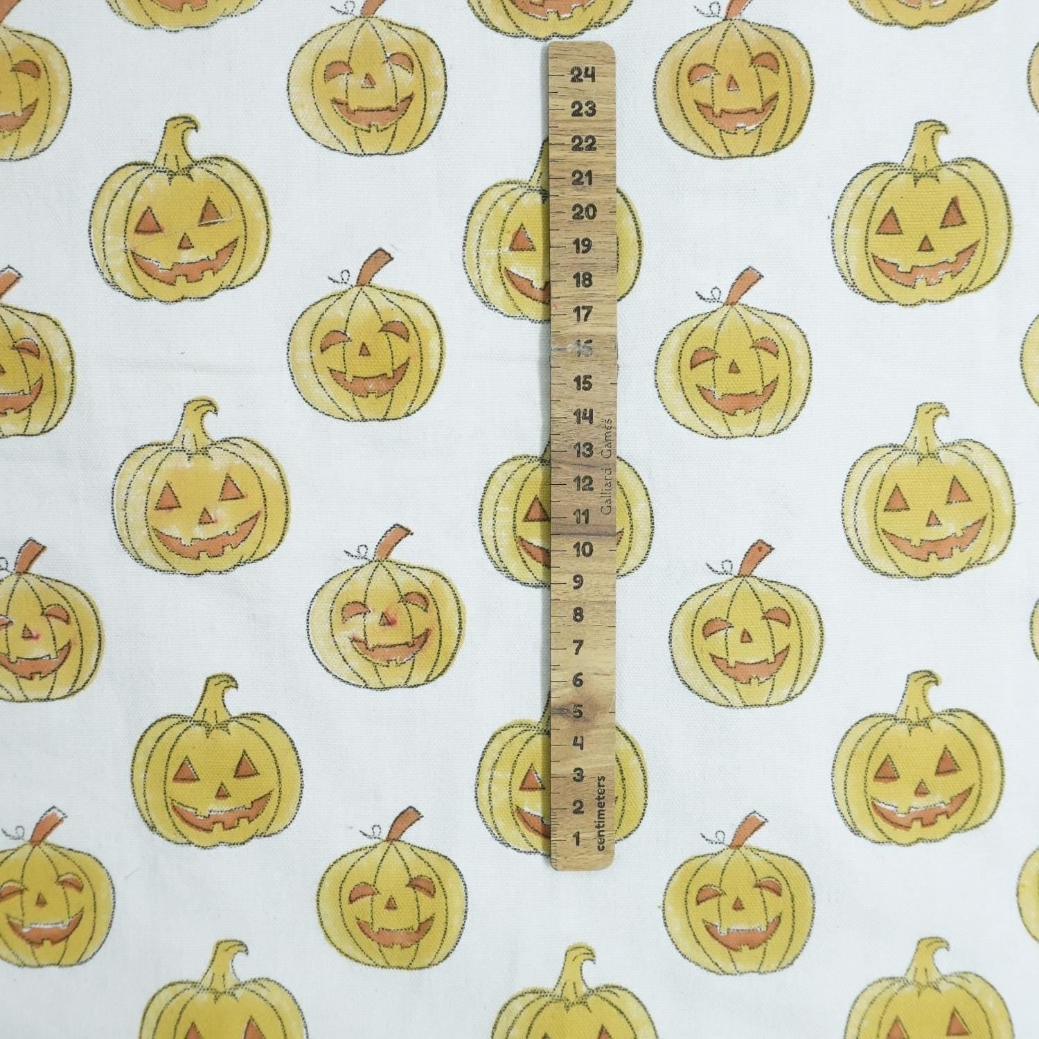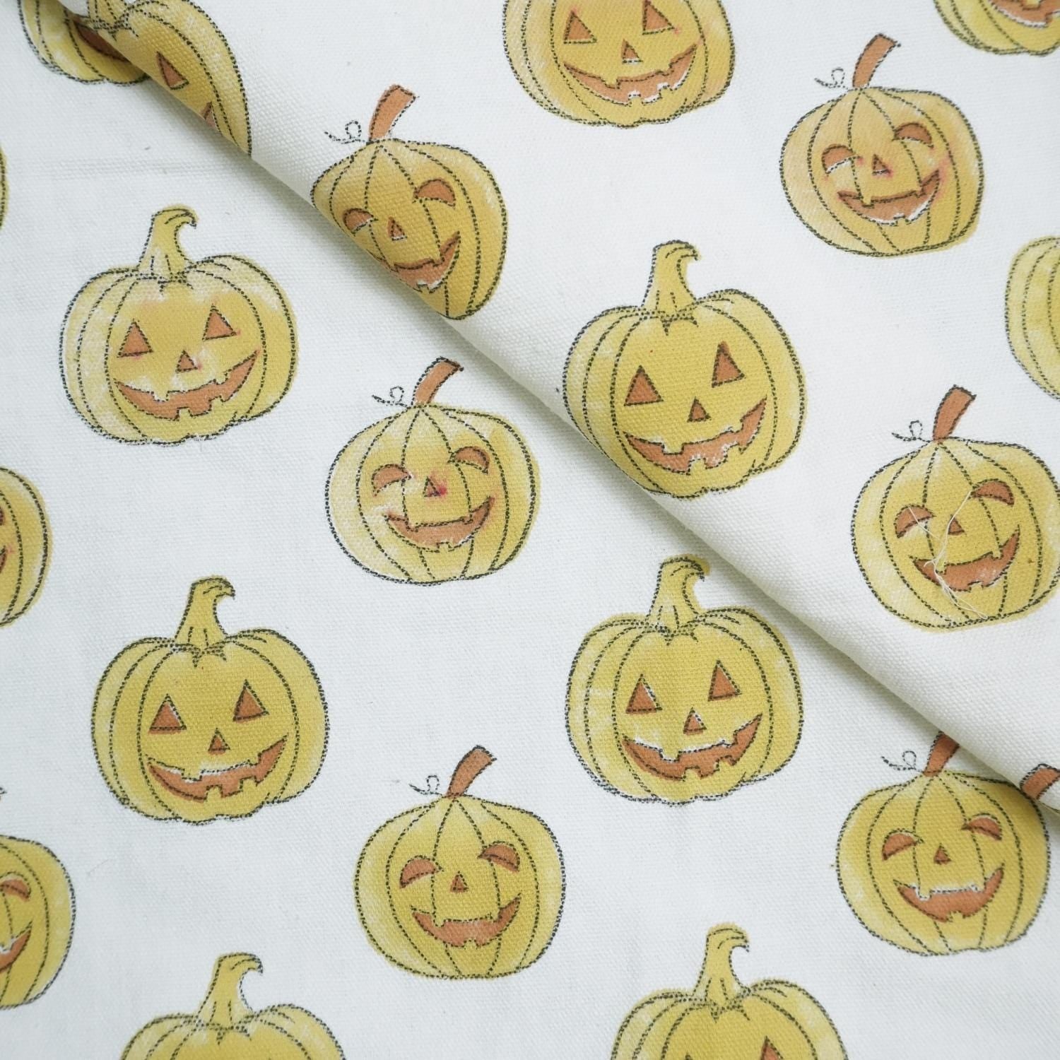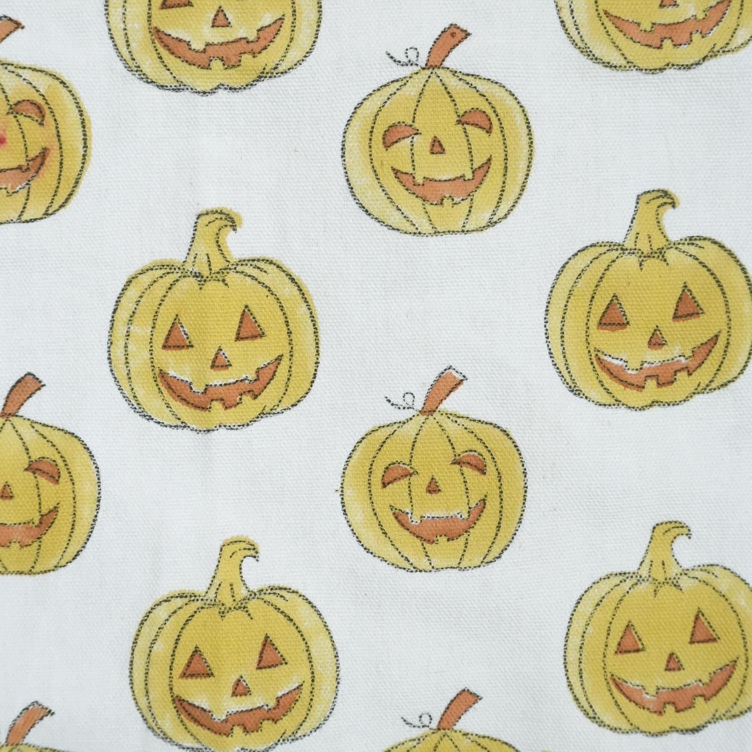 Yellow & Brown Ghost Pumpkin Print Thick Cotton White Fabric for Festive Decor & Tablecloths - PUMPKIN